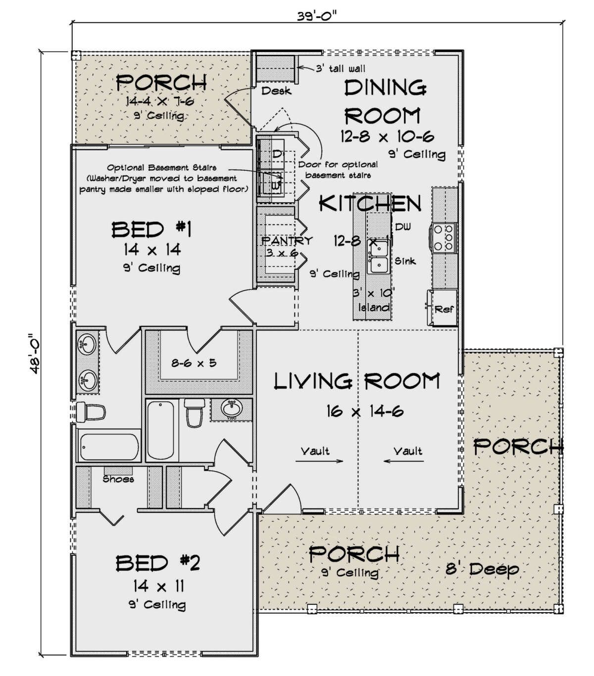 At just 39′ × 48′, this plan uses every inch wisely—creating an open feel without wasted space. Ideal for low-maintenance upkeep and cozy living. 2