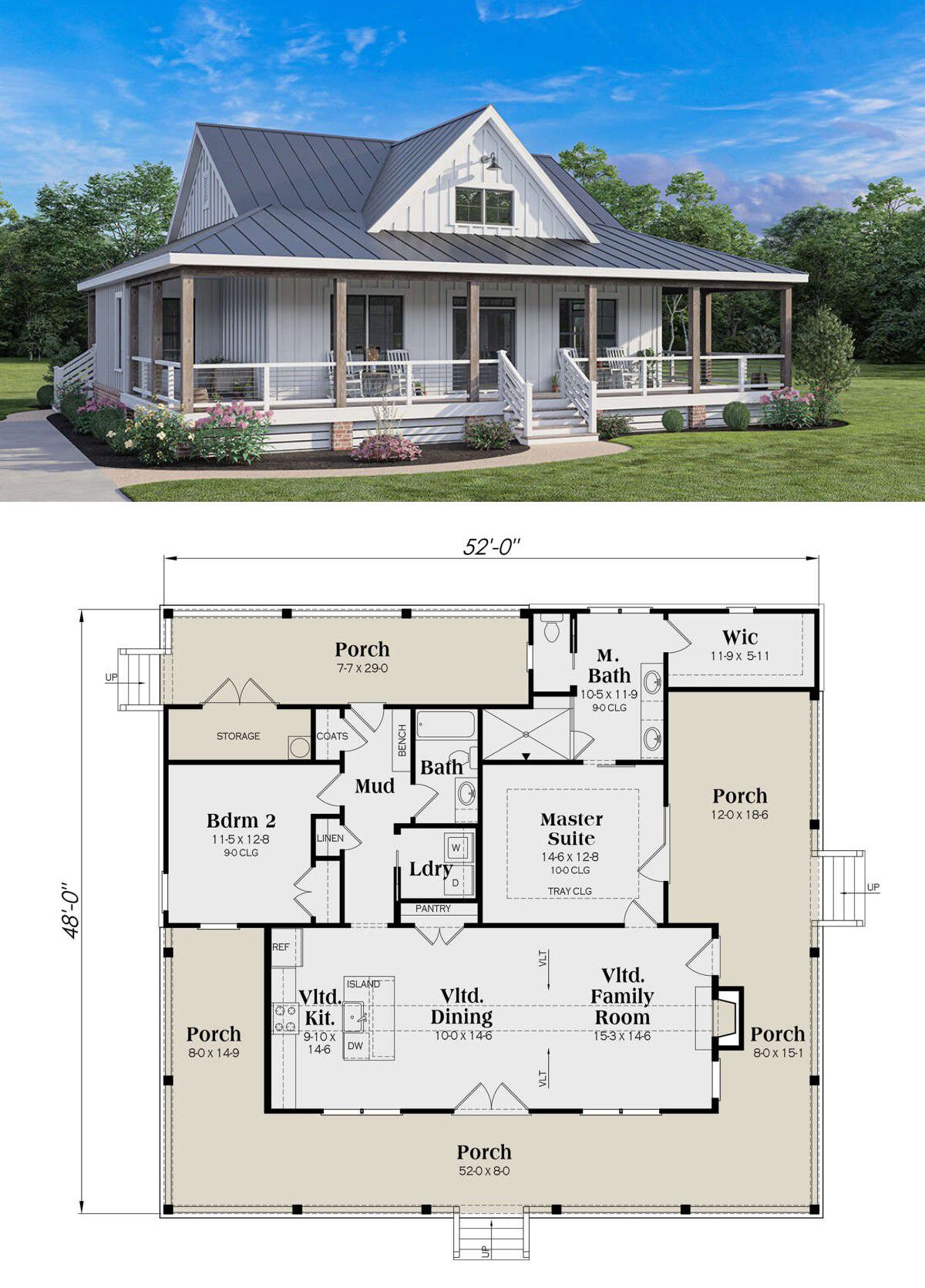 - Footprint spanning ~52′ wide by ~48′ deep. 2