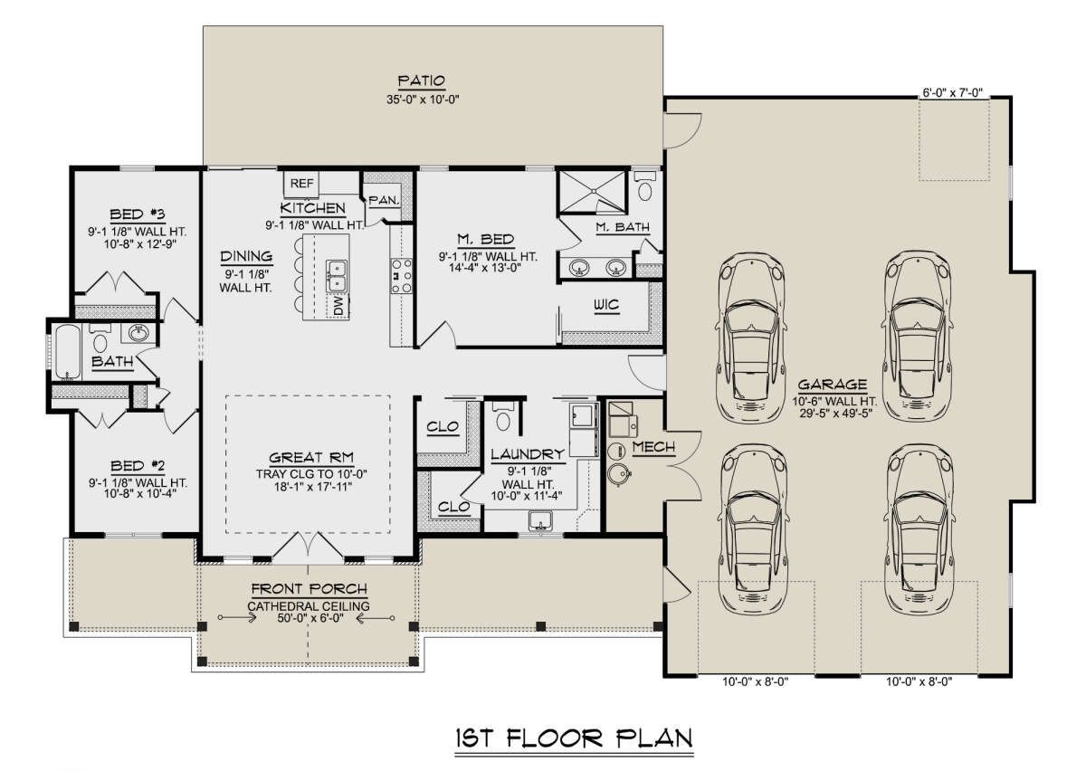 Doors lead from the living area to the covered rear porch—ideal for evening breezes or a quiet coffee in the morning. That connection between inside and out is a favorite part of the plan.