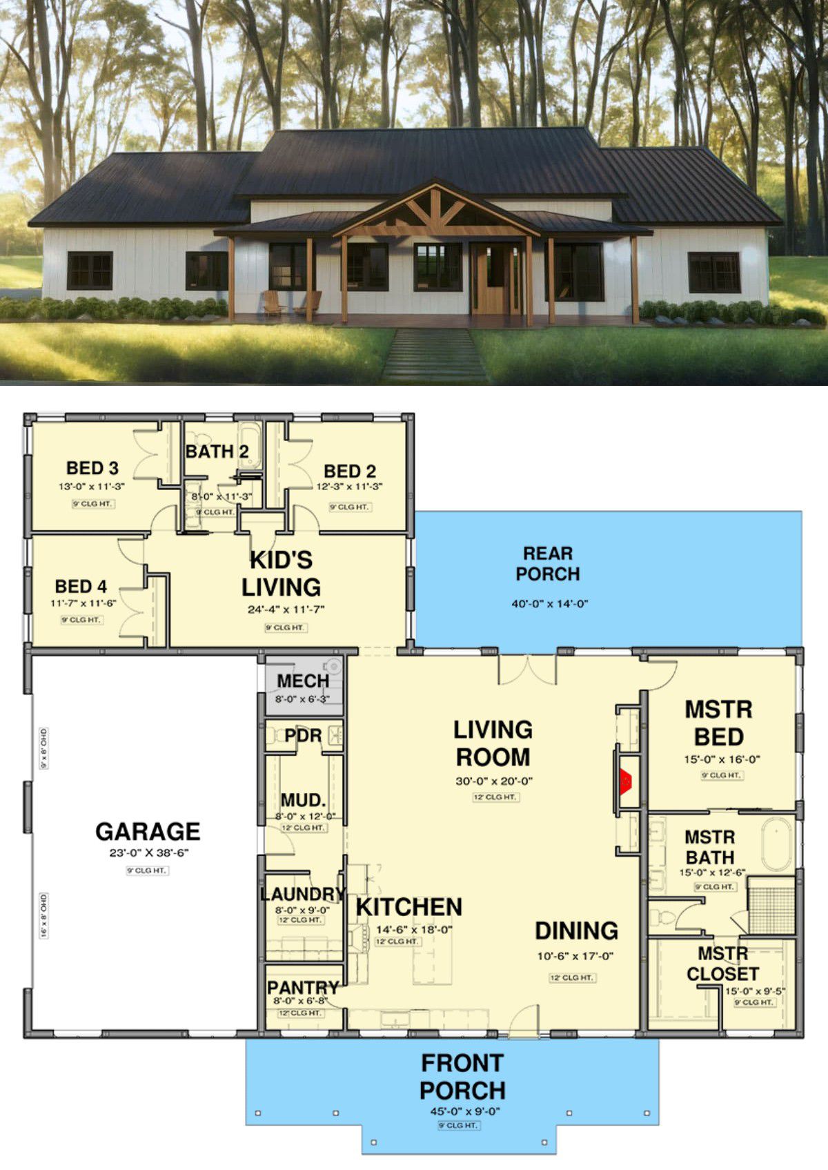 Designed for open comfort and smart utility, with front and rear porches that earn their keep.