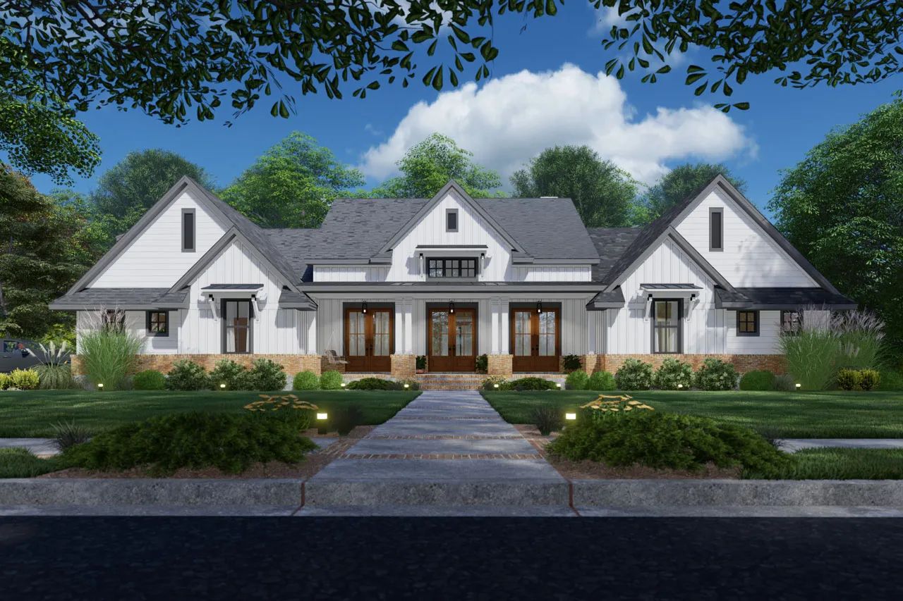 This one‐level modern farmhouse spans approximately 3,077 sq ft, offering a full layout of 4 bedrooms and 3 full baths.