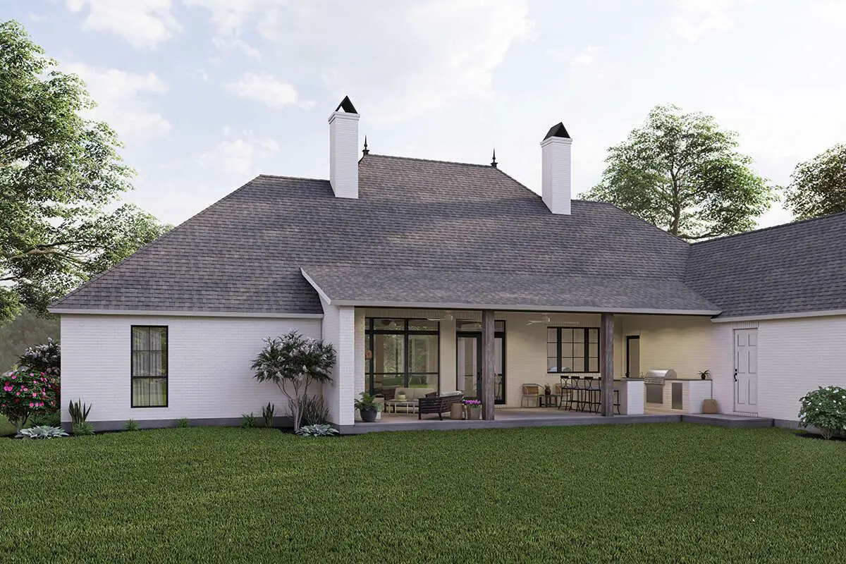 Because it brings together style and sense—strong curb impact, functional interior layout, and the kind of details that matter (like the outdoor fireplace and flex room) without overwhelming scale or awkward circulation. Whether you’re living full-time or hosting frequently, this plan adapts beautifully.