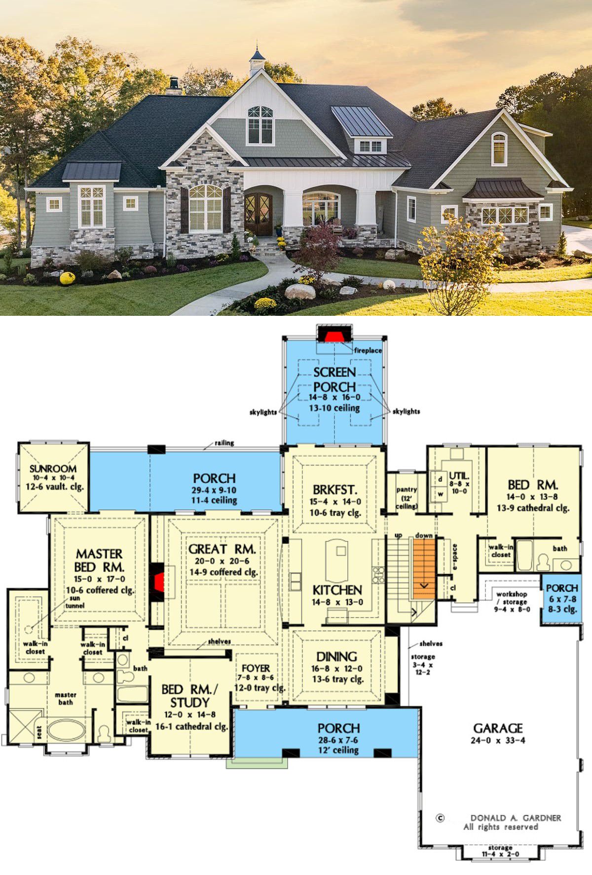 This stunning hillside craftsman plan brings together luxury, smart layout and terrain-savvy design.