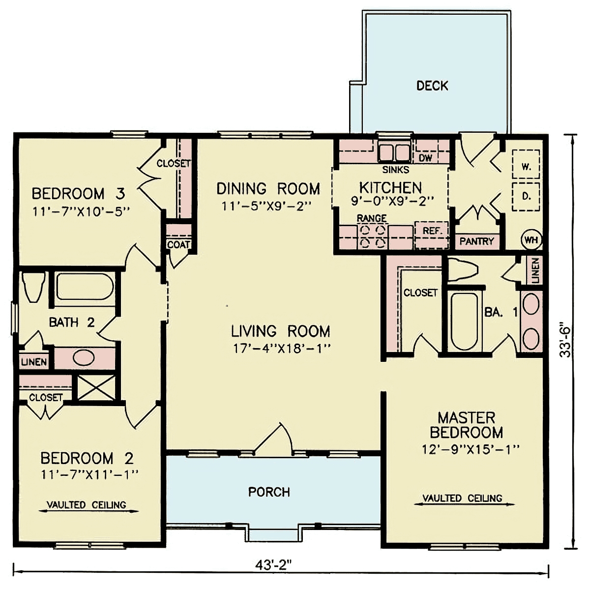 - House Footprint: Width ~43′-2″, Depth ~43′-6″ 8