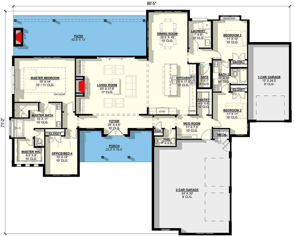 | Living Room Ceiling | 17′ vaulted |