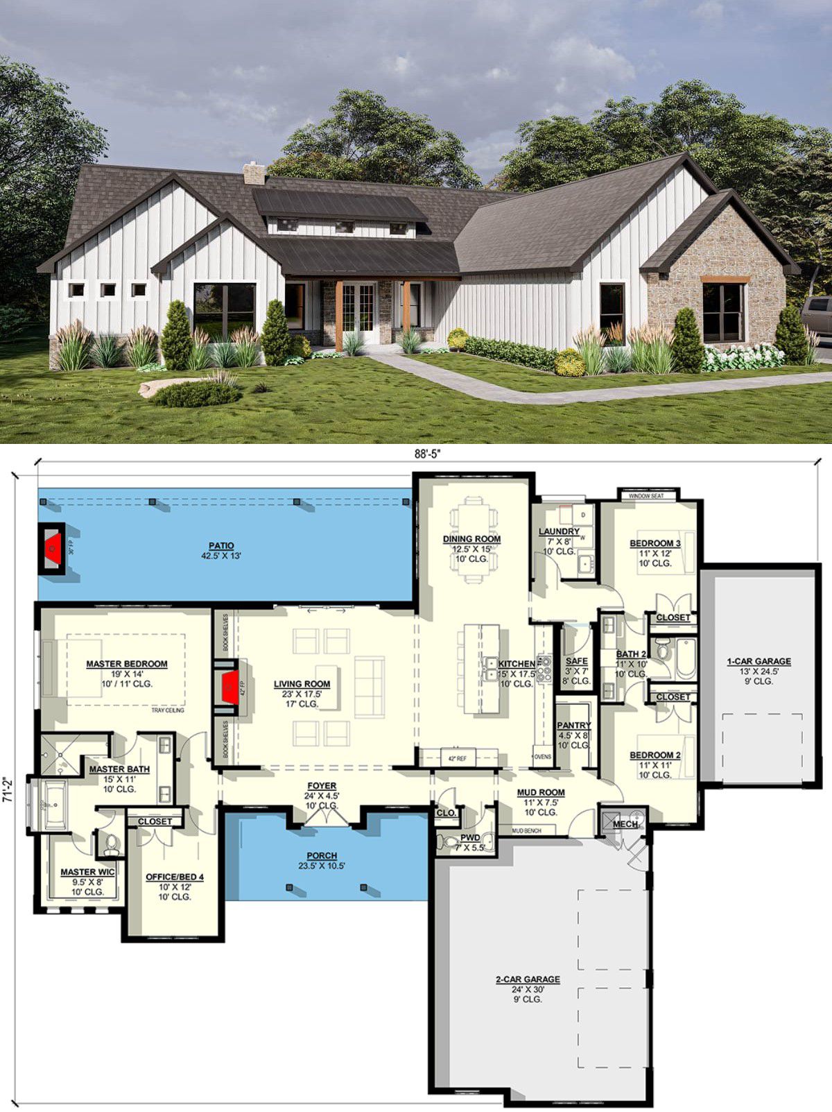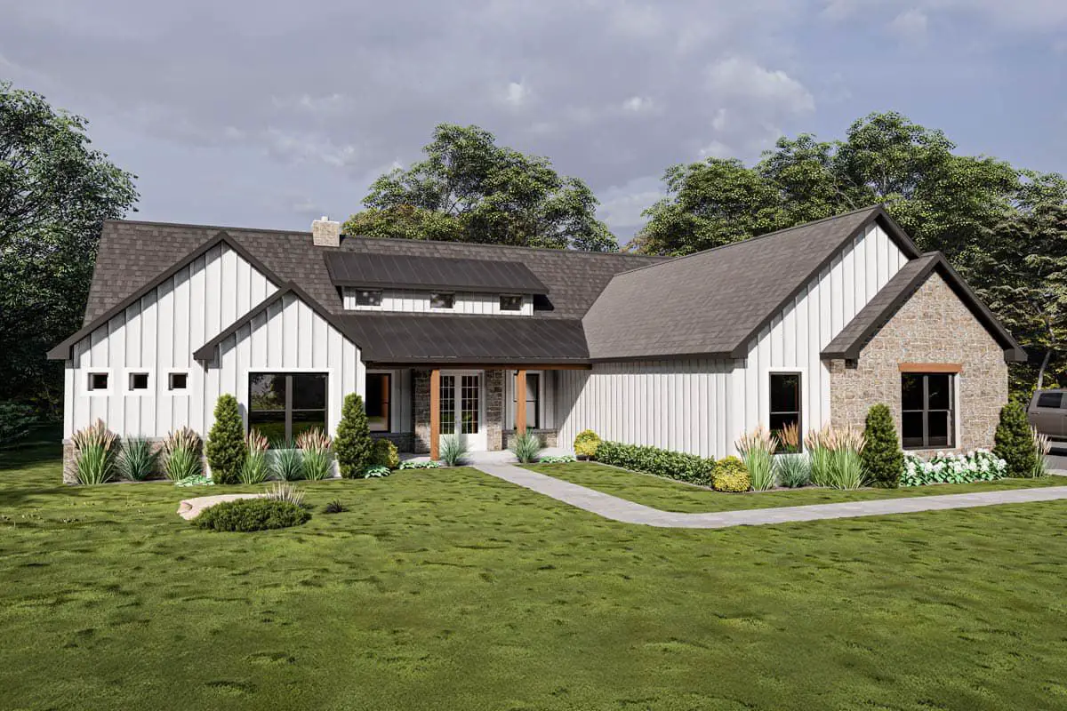 This isn’t “just another farmhouse.” With its grand vaulted living space, practical rooms (office, safe room, mudroom), and generous three-car garage, it’s designed for elegance *and* daily life. It’s the kind of house that feels rich—but also totally livable.