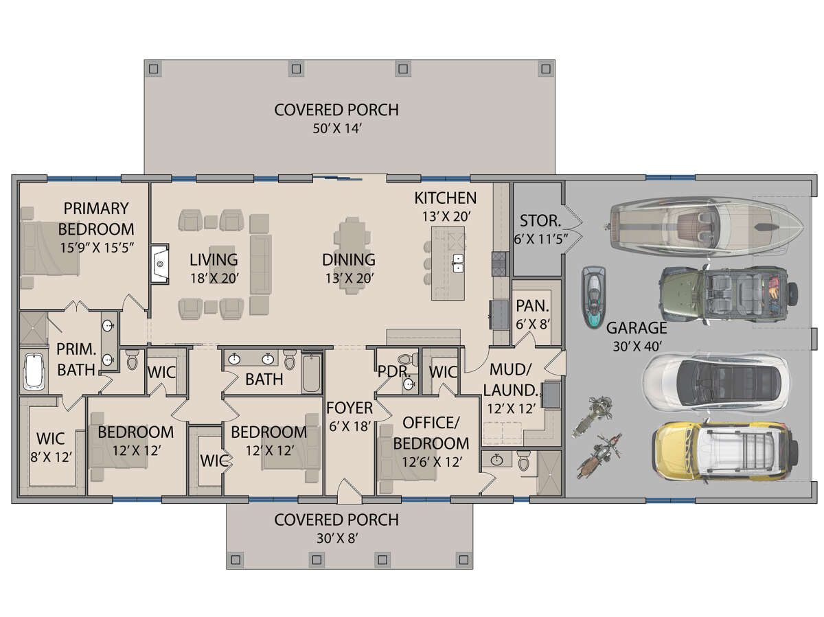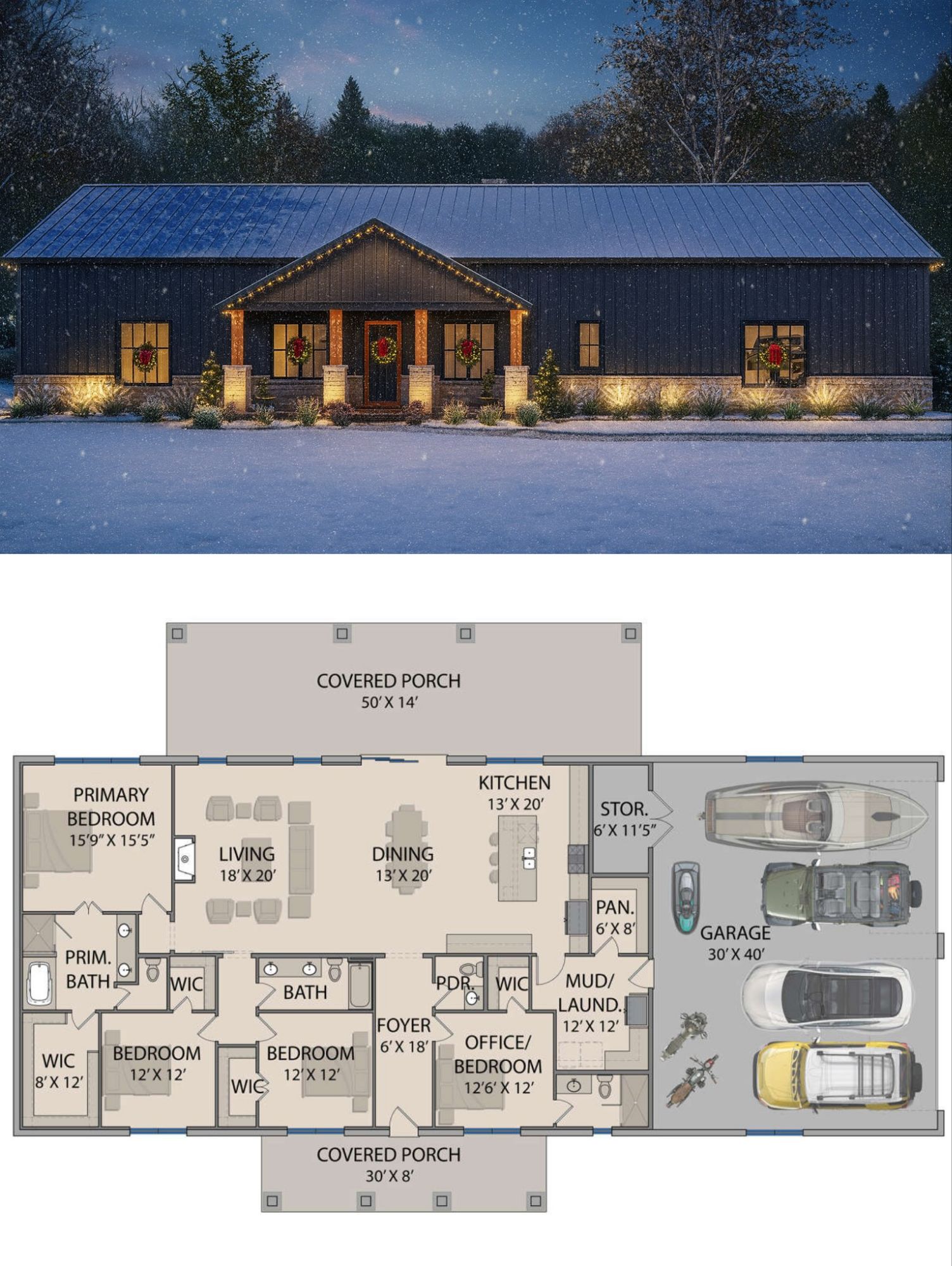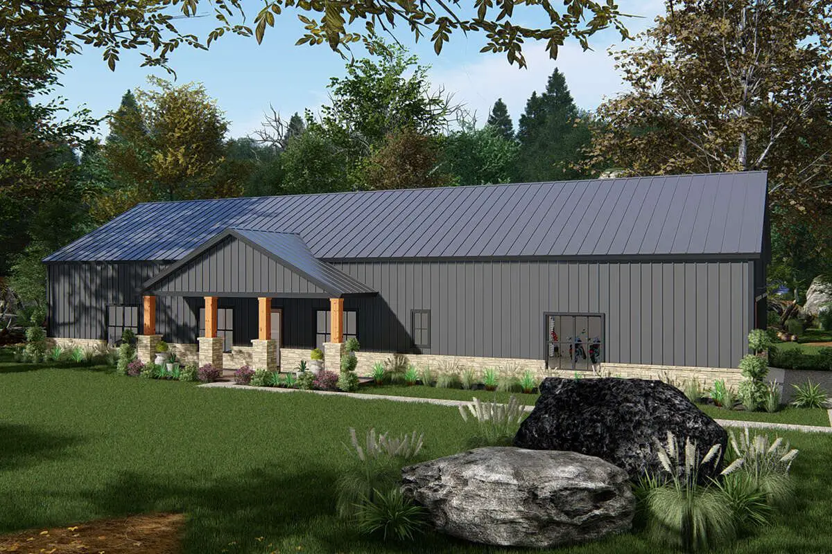 If you’re drawn to wide-open spaces, rustic-shop style convenience, and plenty of room for family, toys or projects — this barndominium plan delivers.