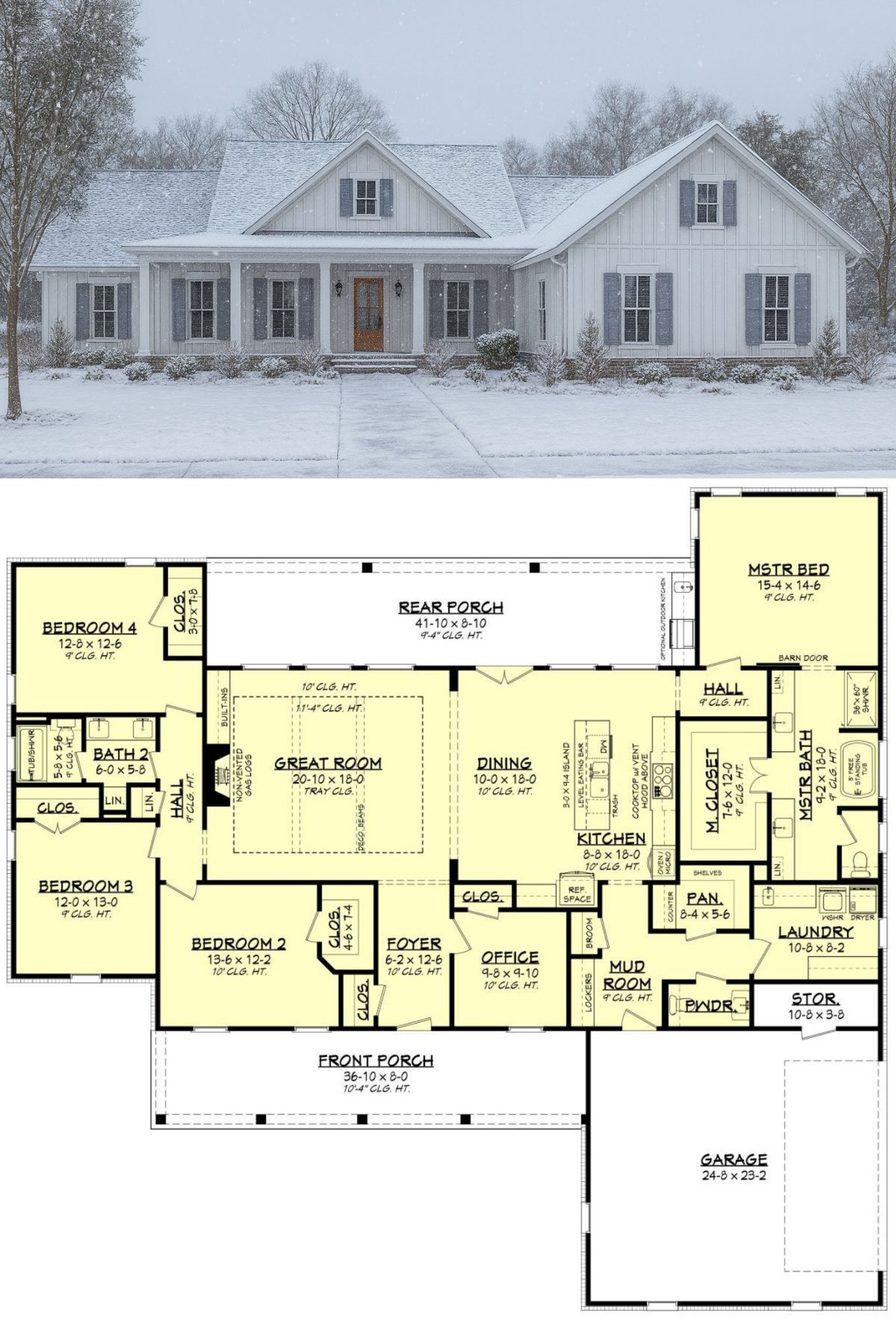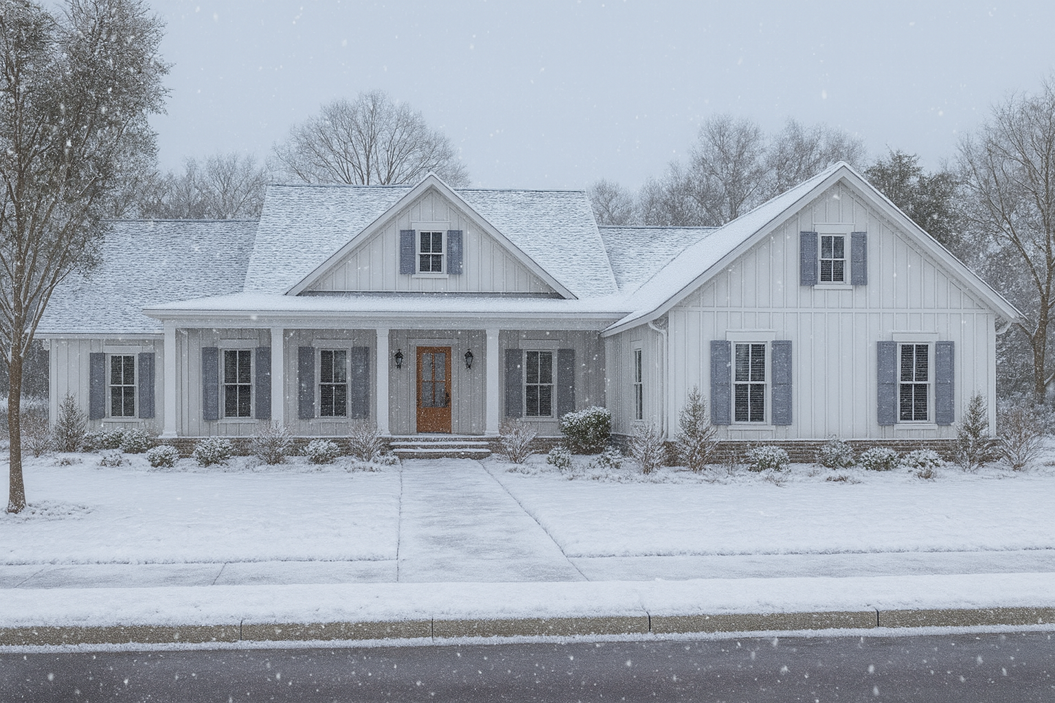 This elegant modern farmhouse spans about 2,607 sq ft on one level, offering 4 bedrooms, 2.5 bathrooms, and a functional, family-friendly layout. Designed for comfort, practicality, and style.