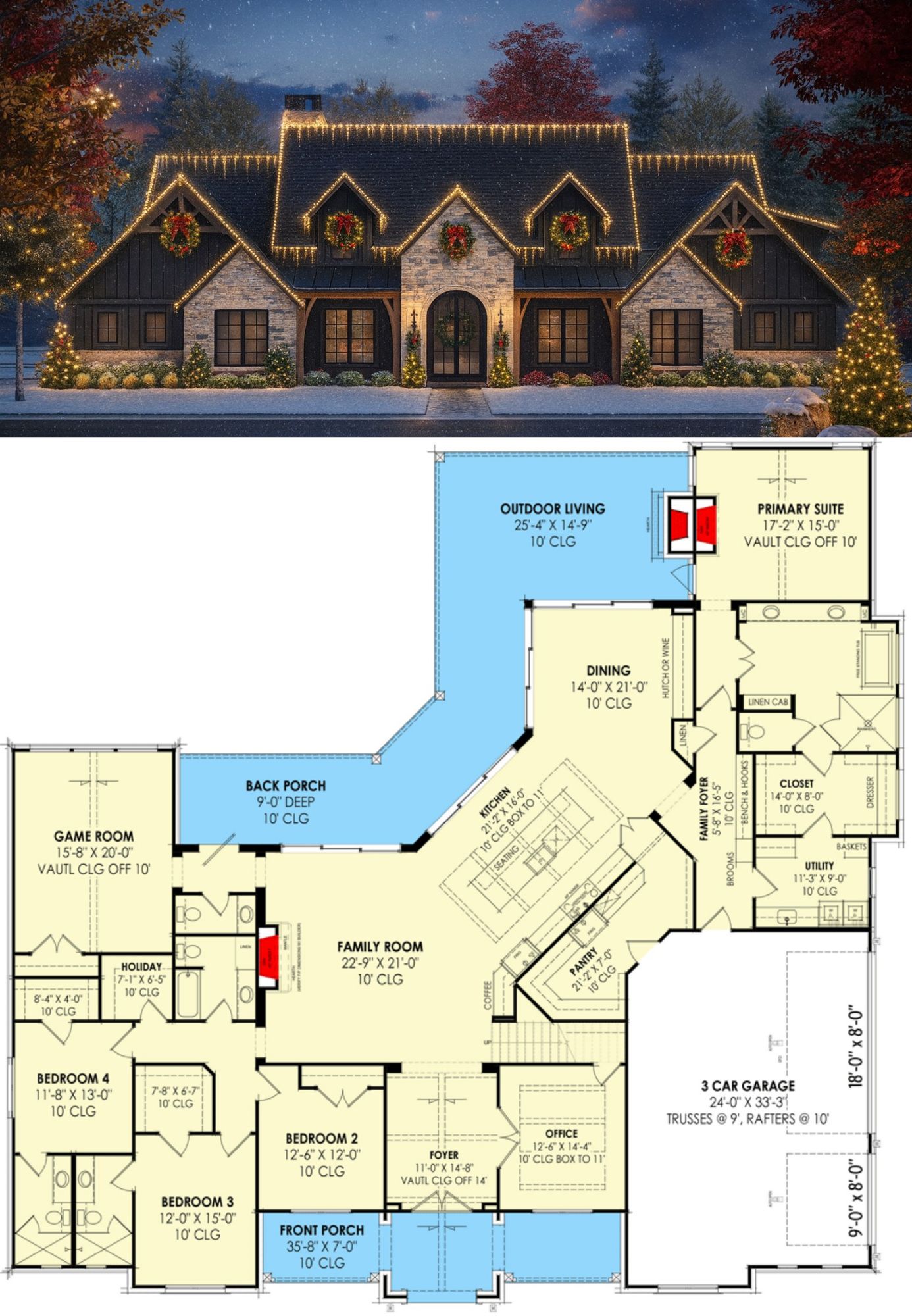 Whether you want a family-friendly home with room to grow, or an elegant home with flexible bonus space and indoor-outdoor appeal — this transitional-style plan is a strong, future-proof option.
