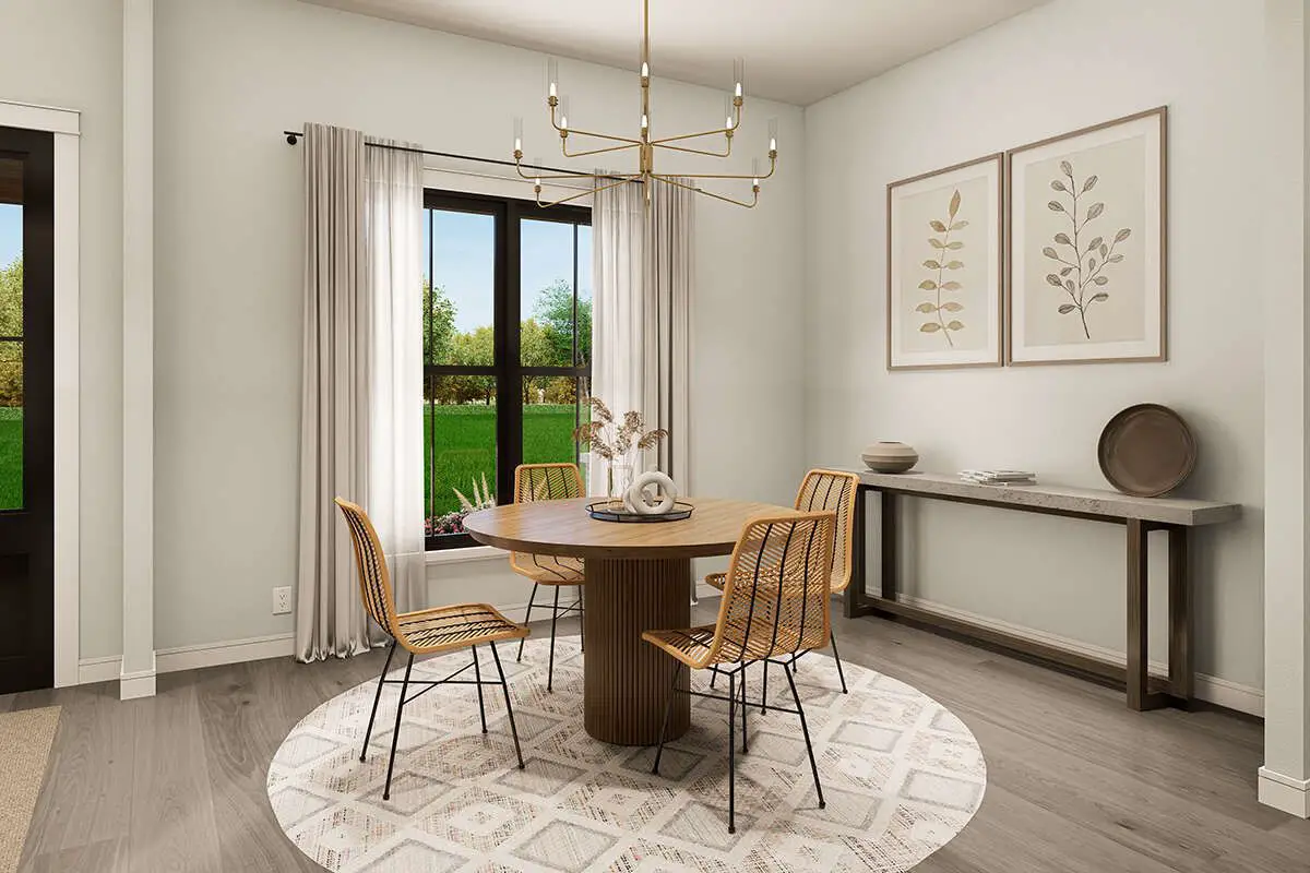 The dining area sits just off the kitchen, with room for a large table that works for both everyday meals and big holiday spreads. It’s close enough to stay casual and connected, but still feels like a defined space where you can light candles and do a slightly fancier dinner when you want.