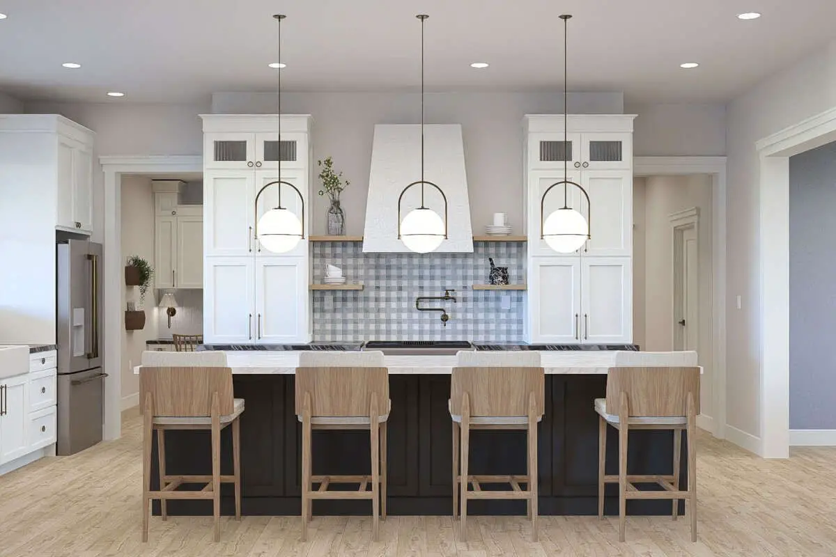 If the kitchen is your happy place, this layout will make you smile. It’s set up to be both gorgeous and practical, with plenty of space to cook, host, snack, and hang out.