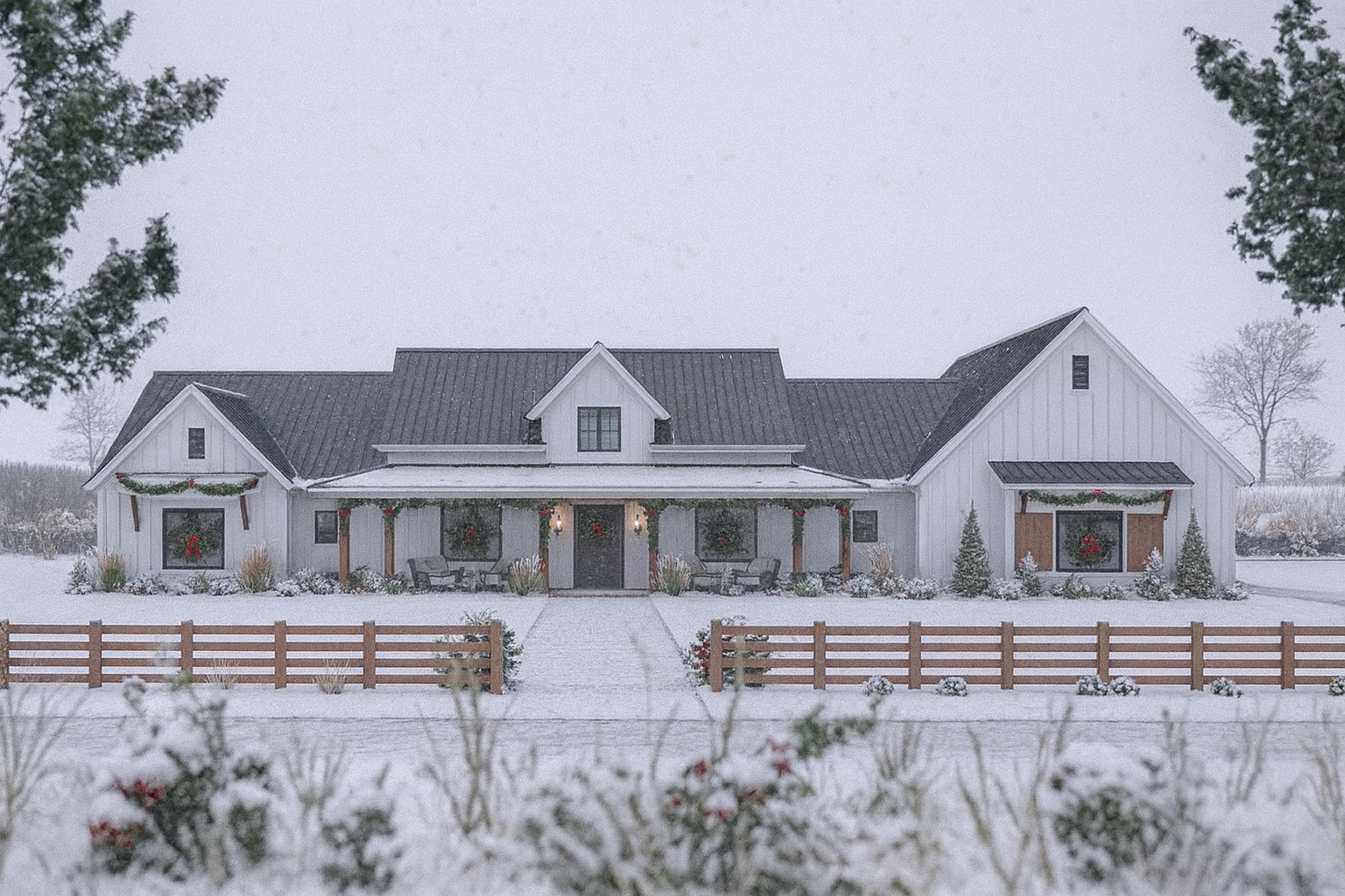 Exterior & Curb Appeal – Wide, Relaxed Modern Farmhouse