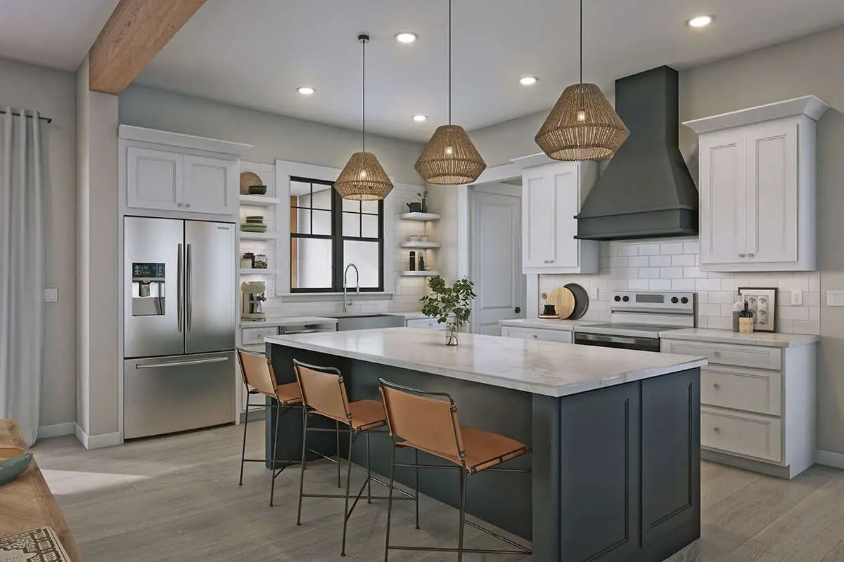 - Kitchen with island: A big island anchors the kitchen – perfect for breakfast, quick snacks, kids doing homework, or friends sitting while you cook.