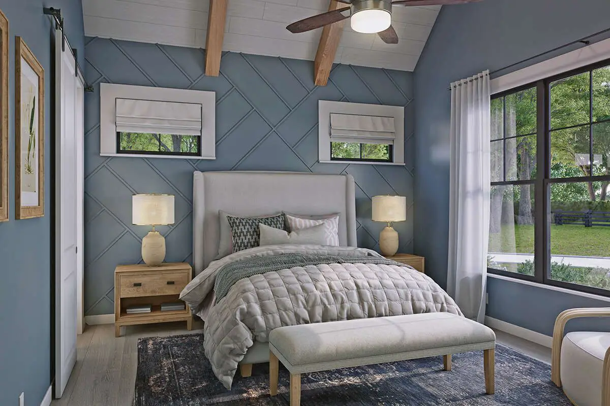 The primary bedroom sits privately on its own “wing” of the home, away from the other bedrooms and main noise zones.
