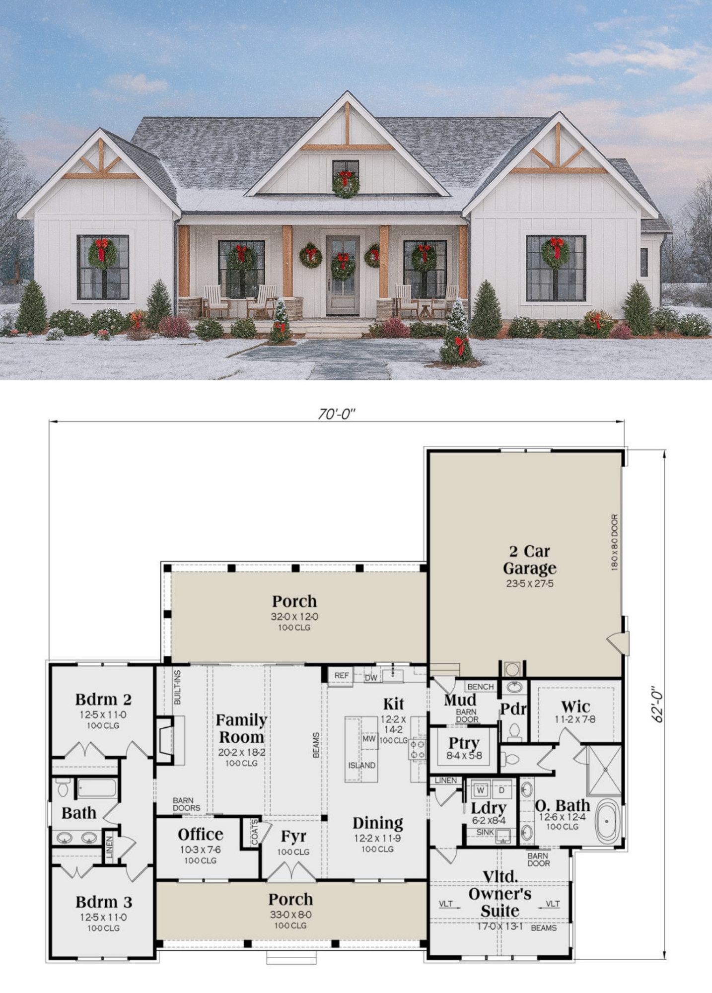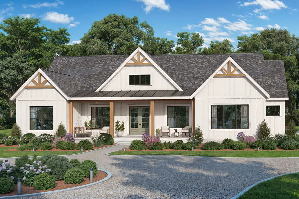 If you want a one-story modern farmhouse that feels big, bright, and easy to live in – without going crazy on square footage – this 2,716 sq ft design is a sweet spot.