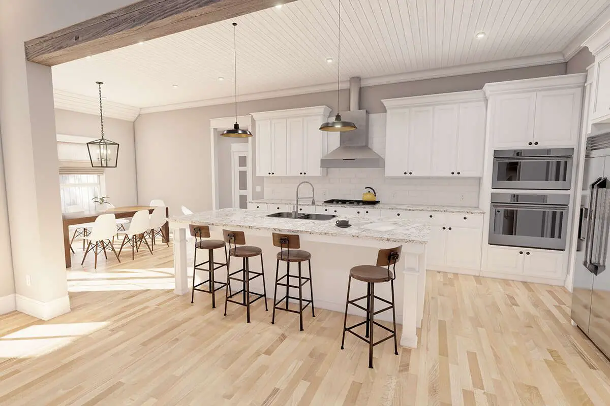 This modern farmhouse design delivers about 3,877 sq ft of spacious, refined living, featuring 4 bedrooms and 3½ bathrooms.
