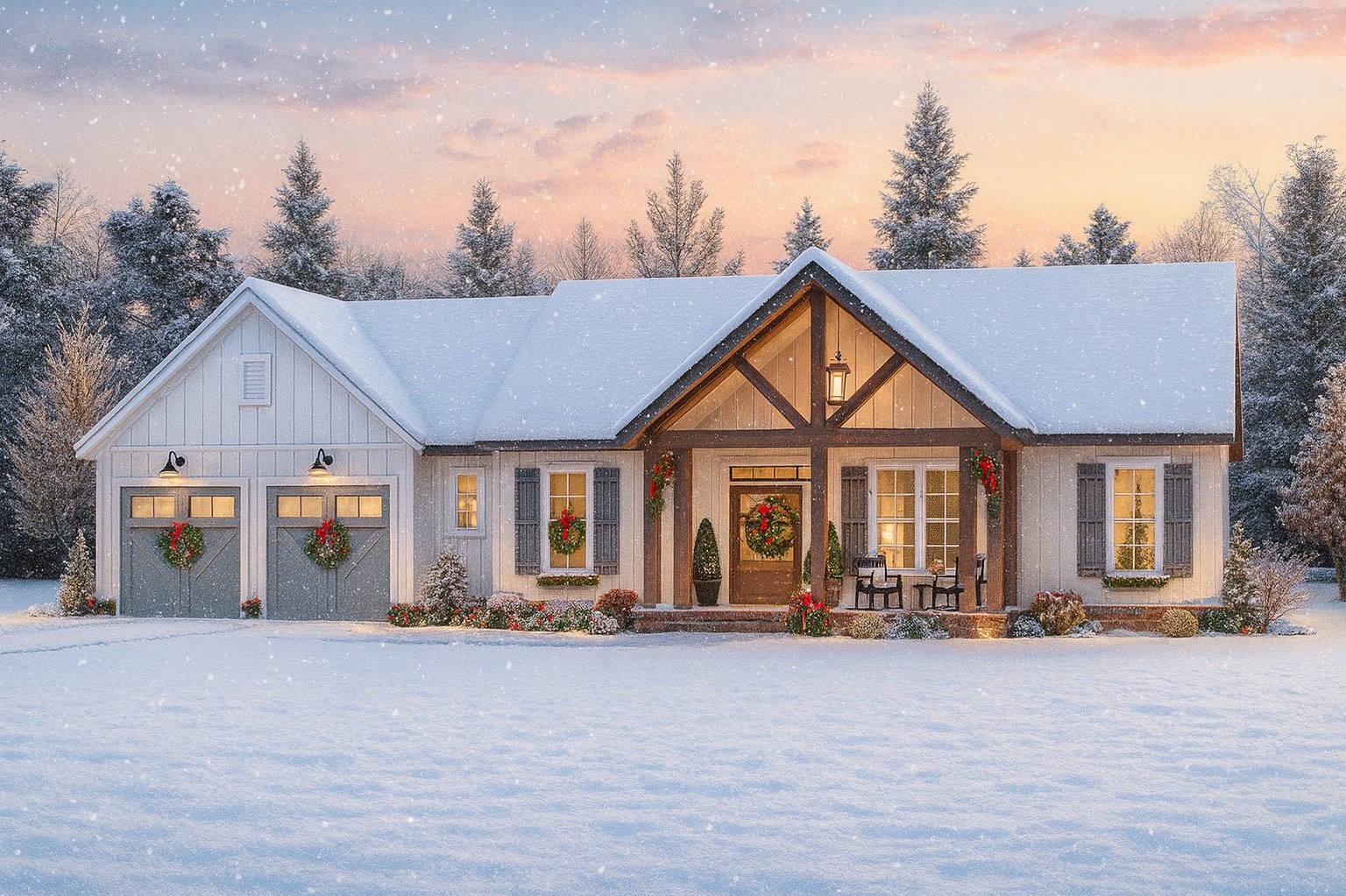 The 2-car garage (≈ 689 sq ft unheated) integrates naturally with the design without overwhelming the façade.