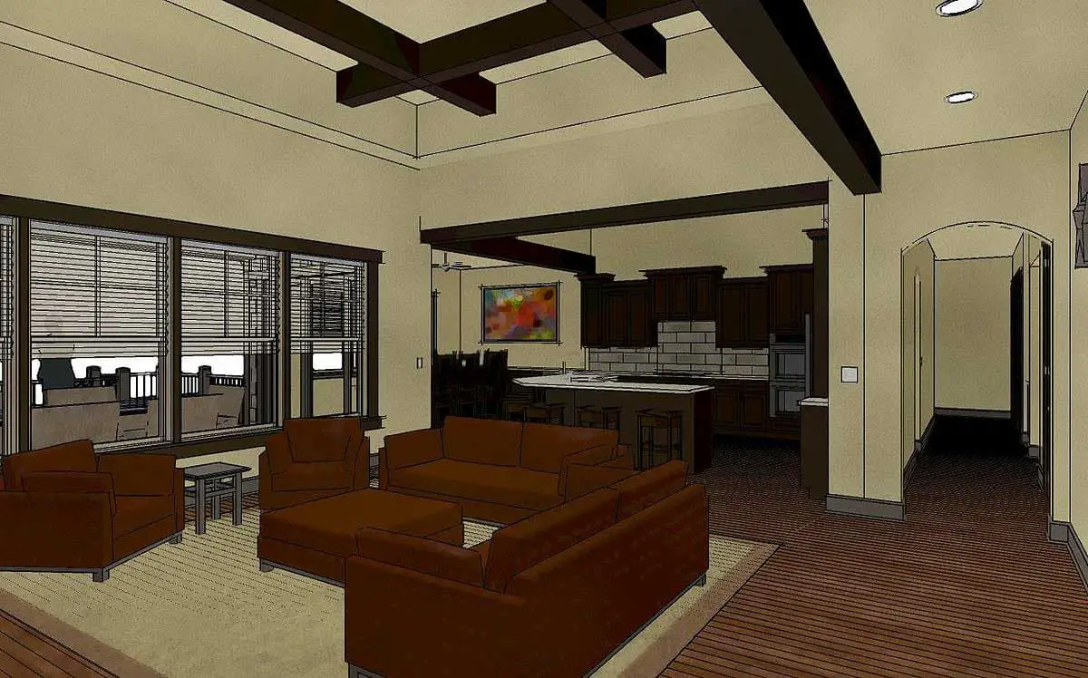 The open-concept core, complemented by the Rustic-Craftsman style which traditionally values built-in features, natural light and human-scale design 3, would create a home that feels both grand and welcoming — suitable for gatherings, family living or relaxed everyday comfort.