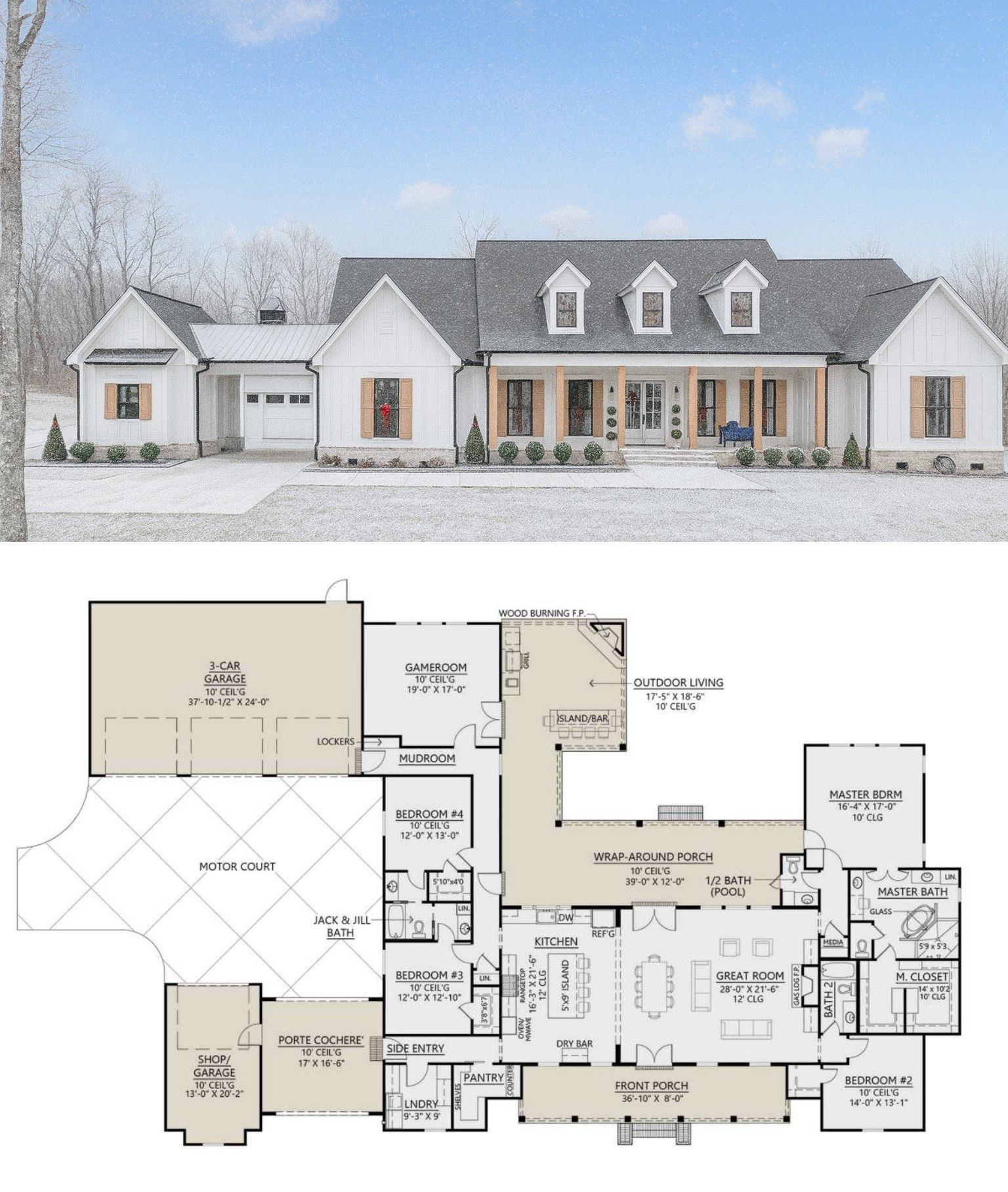 The bedroom layout — including a private master wing and flexible secondary-bedroom zone — works well for families, guests, or adaptable use over time. If you want a home that feels spacious but manageable, stylish yet functional — this modern farmhouse plan hits that sweet spot.