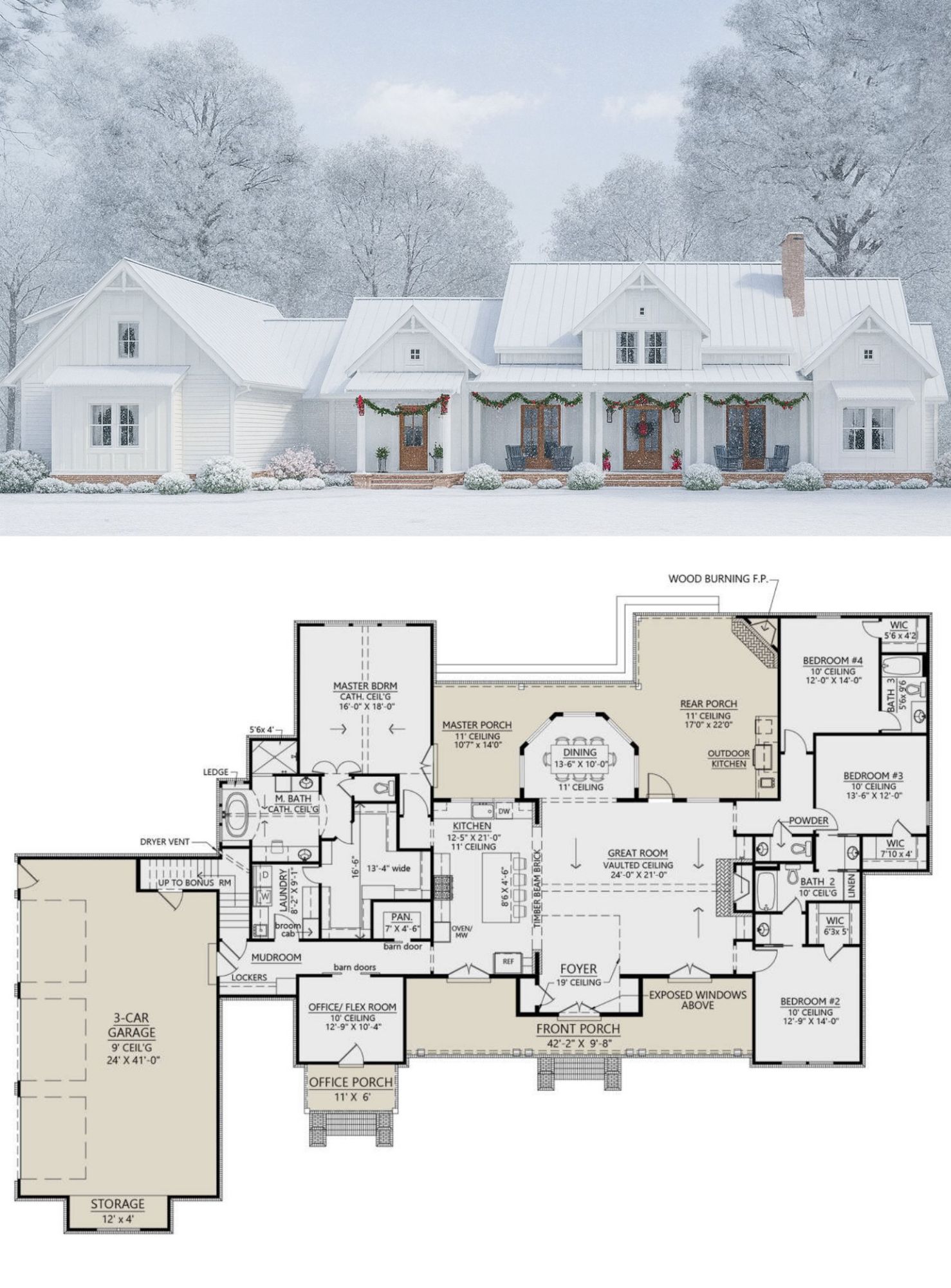 The 4–5 bedrooms plus flexible bath/office/garage configurations give room to grow or adapt over time. If you want a relatively spacious home that still feels cozy, functional, and suited for both everyday life and entertaining — this modern farmhouse layout is a very strong choice.