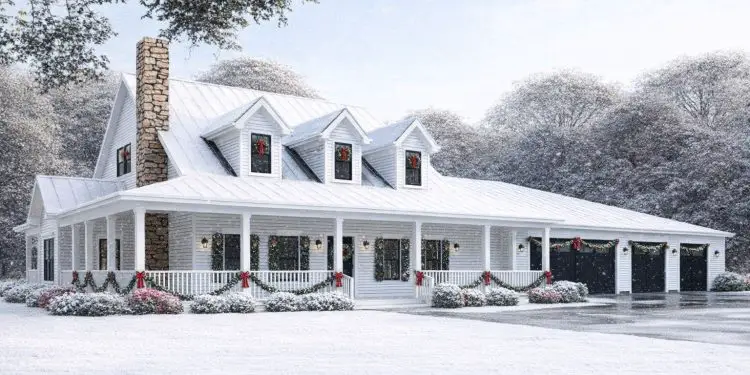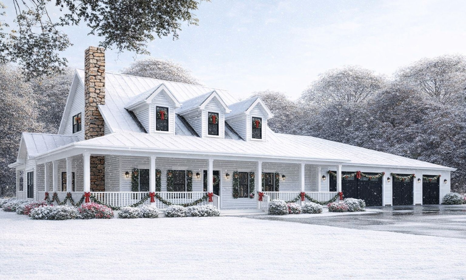 The exterior embraces classic modern-farmhouse aesthetics: wrap-around porches or covered porches (depending on orientation), clean siding lines, and a welcoming entry that balances charm with practicality.