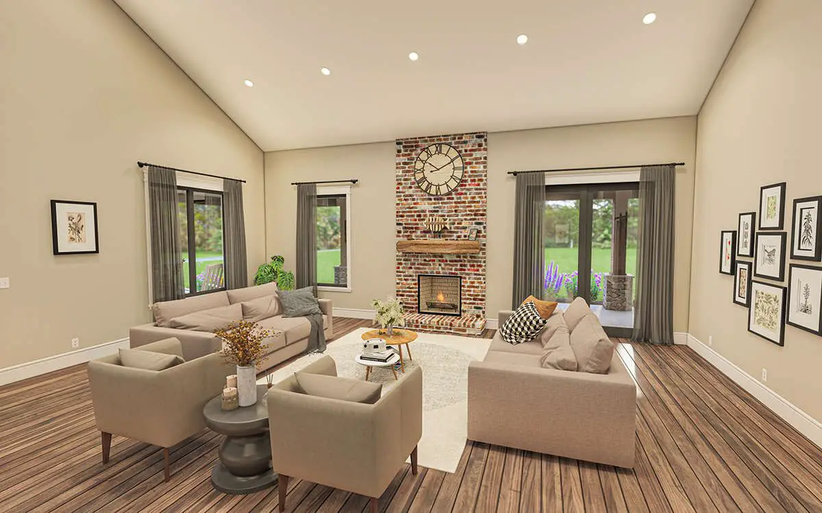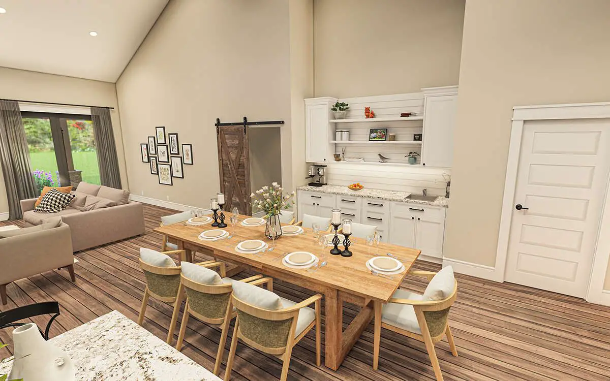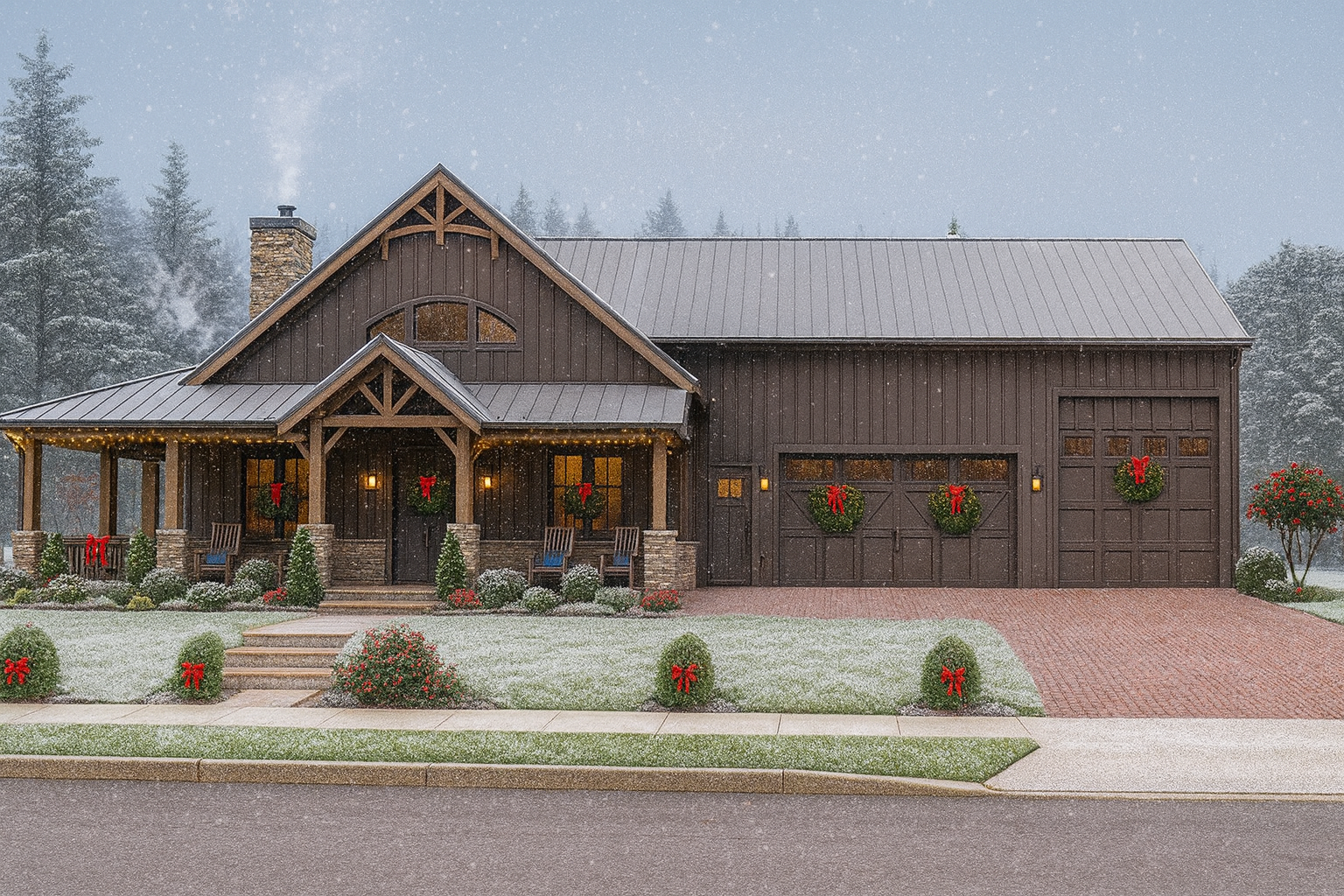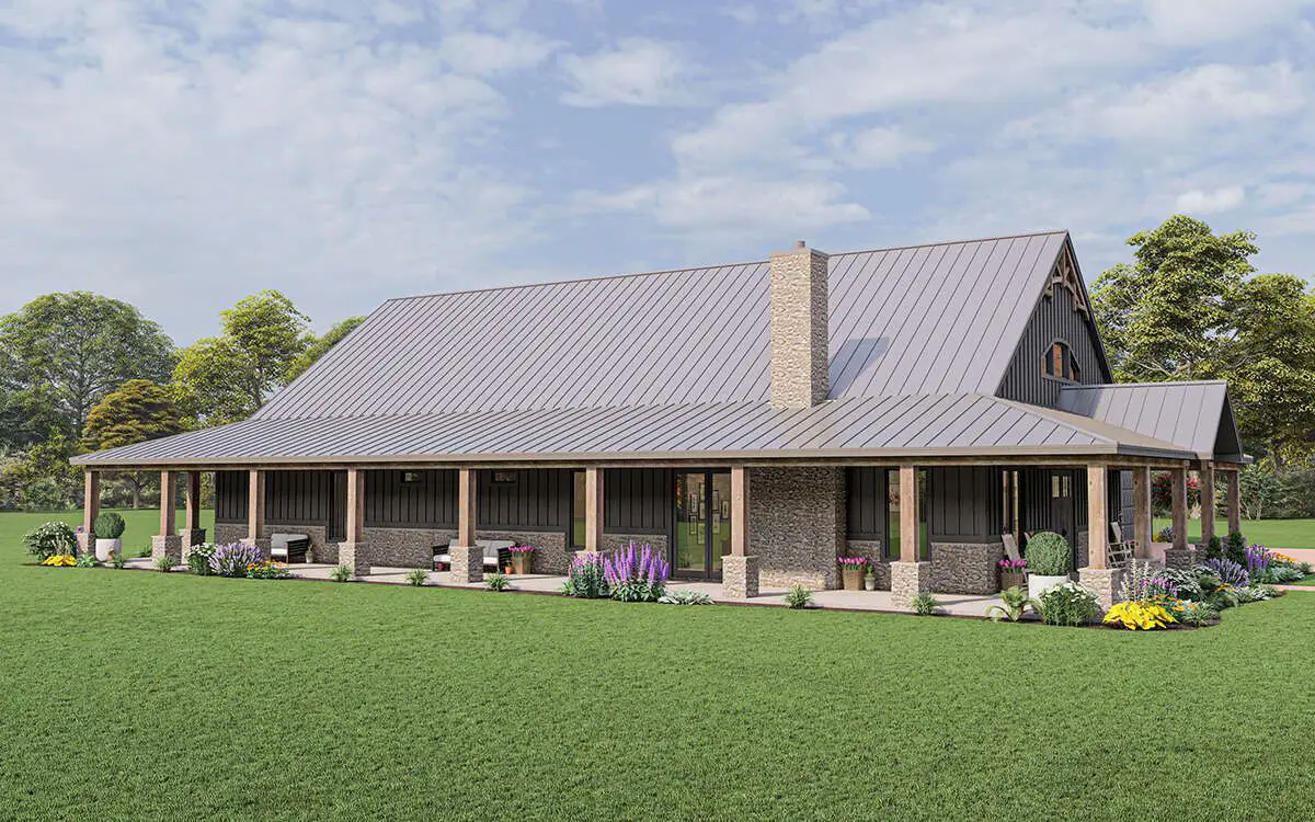 - Cathedral-ceiling great room + framed porch gives volume, light, and the rustic-barn vibe. 12