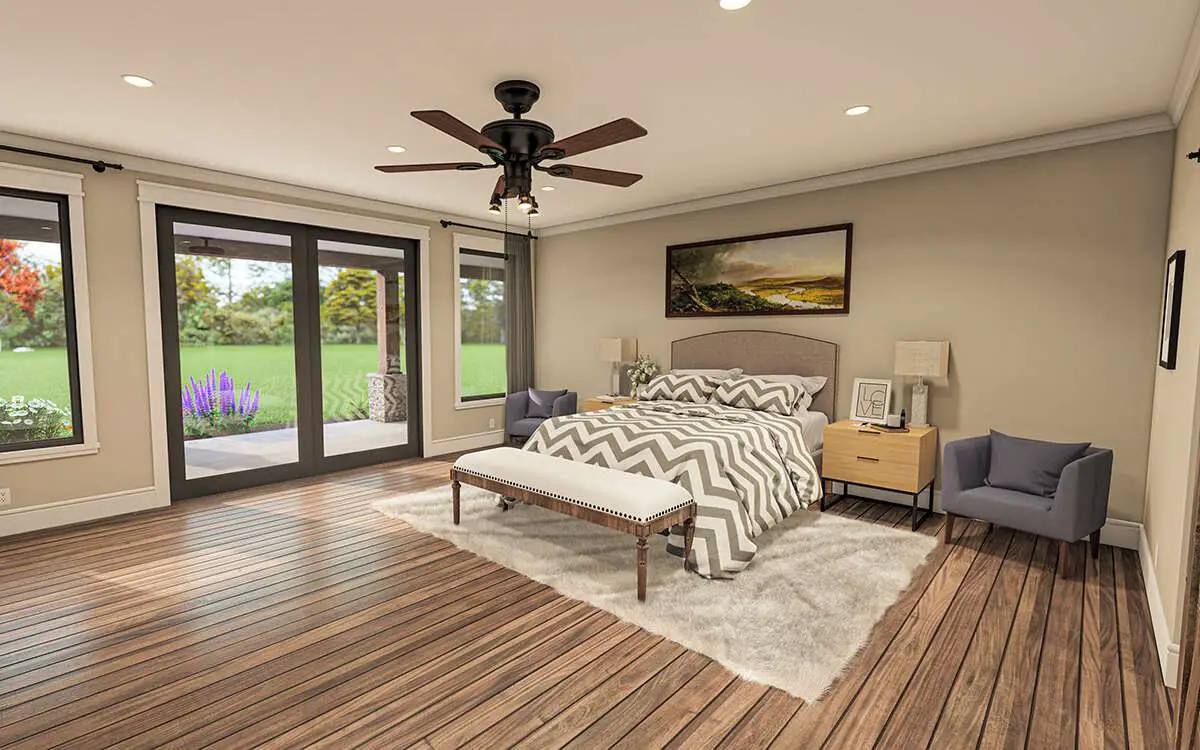 – The **master bedroom** includes porch access to the outside, an ensuite bath, and a large walk-in closet — offering a private and comfortable retreat.