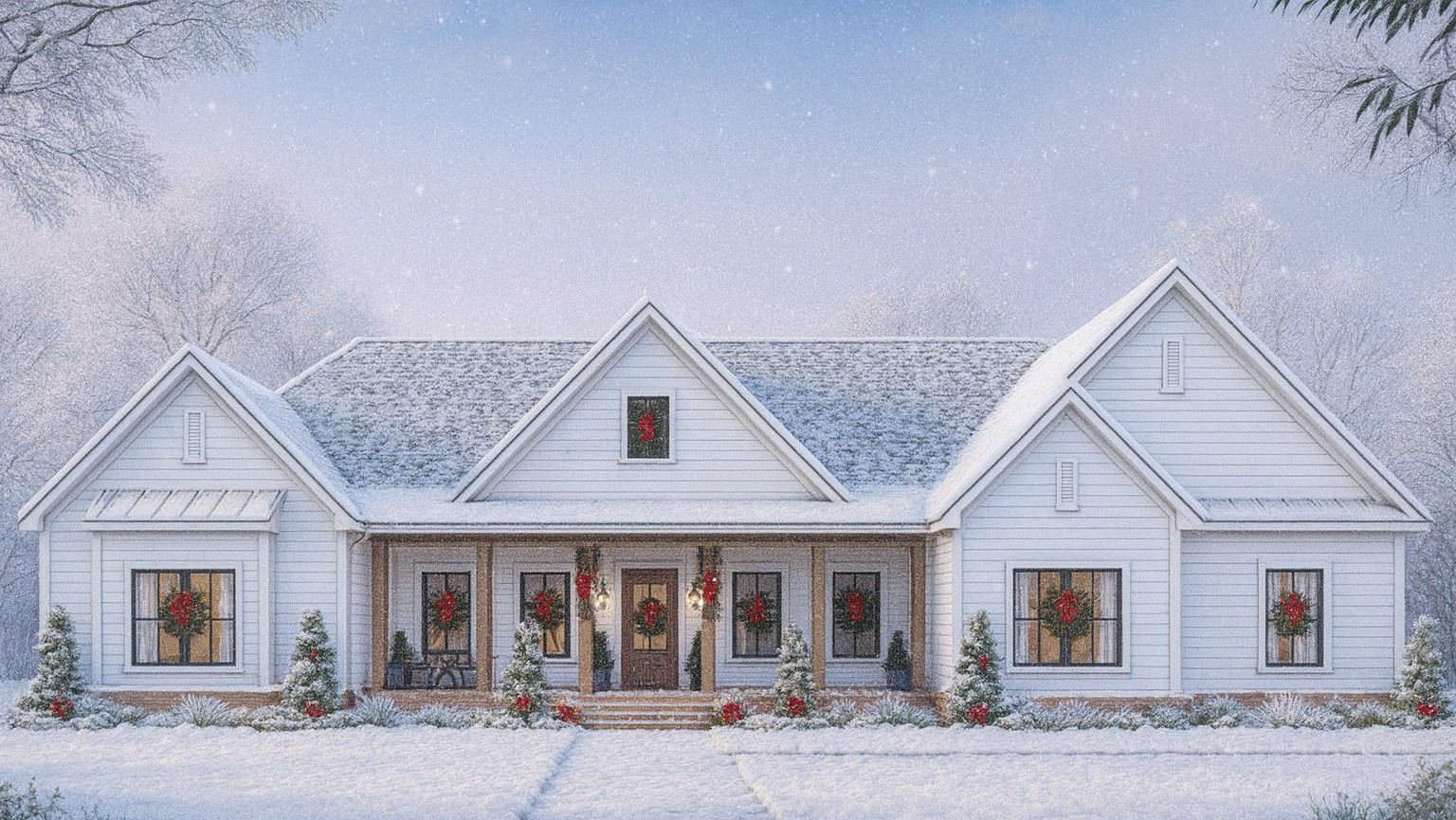 It projects a clean, modern-farmhouse aesthetic without unnecessary extravagance, which helps with curb appeal, maintenance, and construction simplicity.