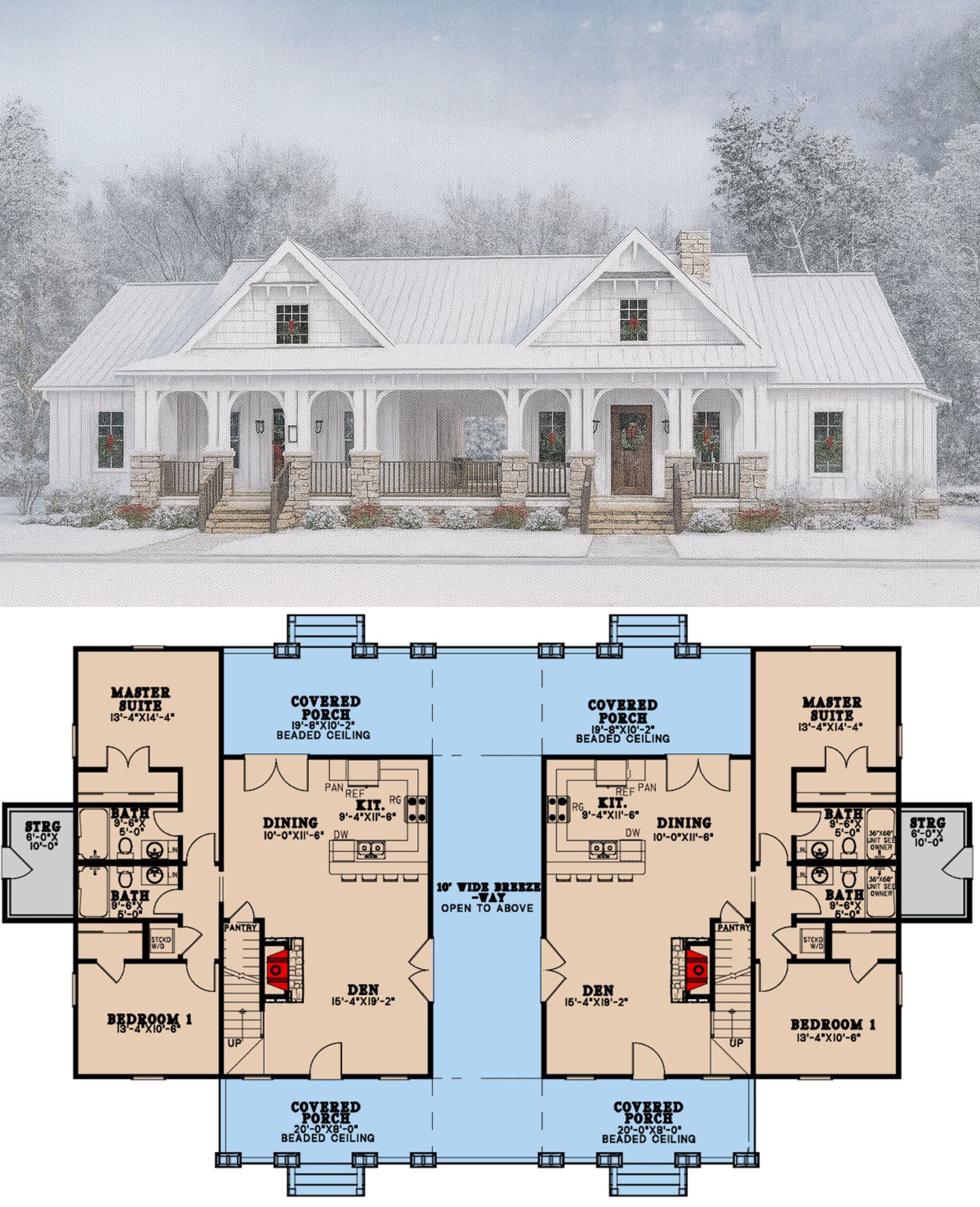 If you’re looking for a **duplex that feels more like two full homes**, this plan offers a strong balance: each unit gives full comfort (4 beds, 3 baths), with good privacy thanks to separate entries and a breezeway.