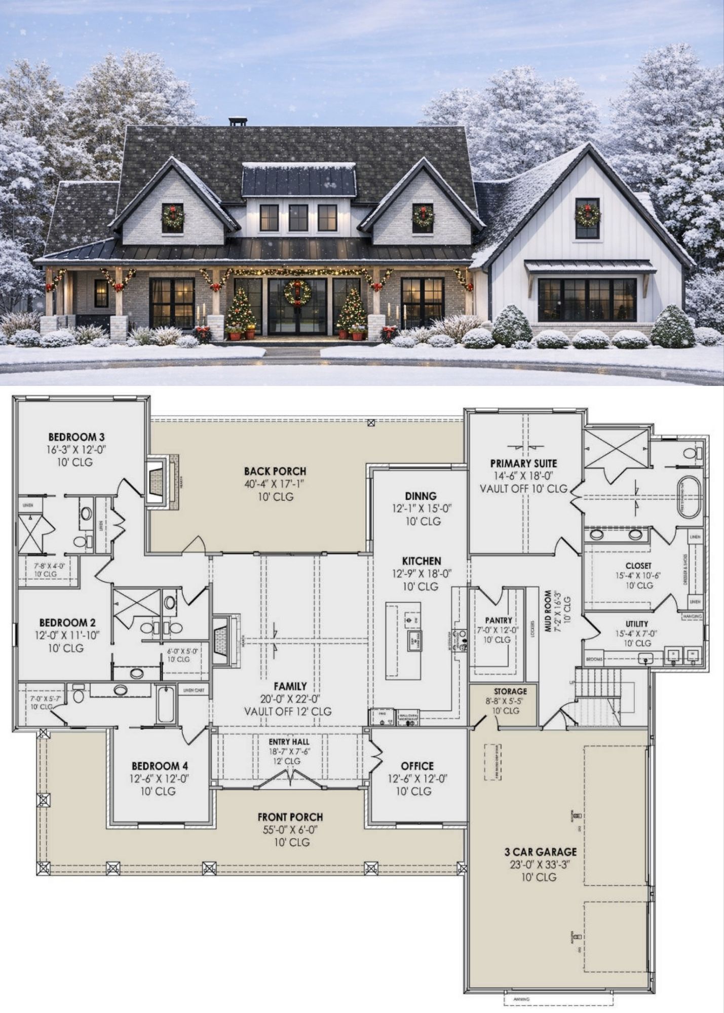This modern farmhouse design hits a solid balance of **size, flexibility, and practicality**. With four well-sized bedrooms and multiple bathrooms, it accommodates a growing family — while the open living areas and generous garage/storage space support comfort, utility, and future adaptability.