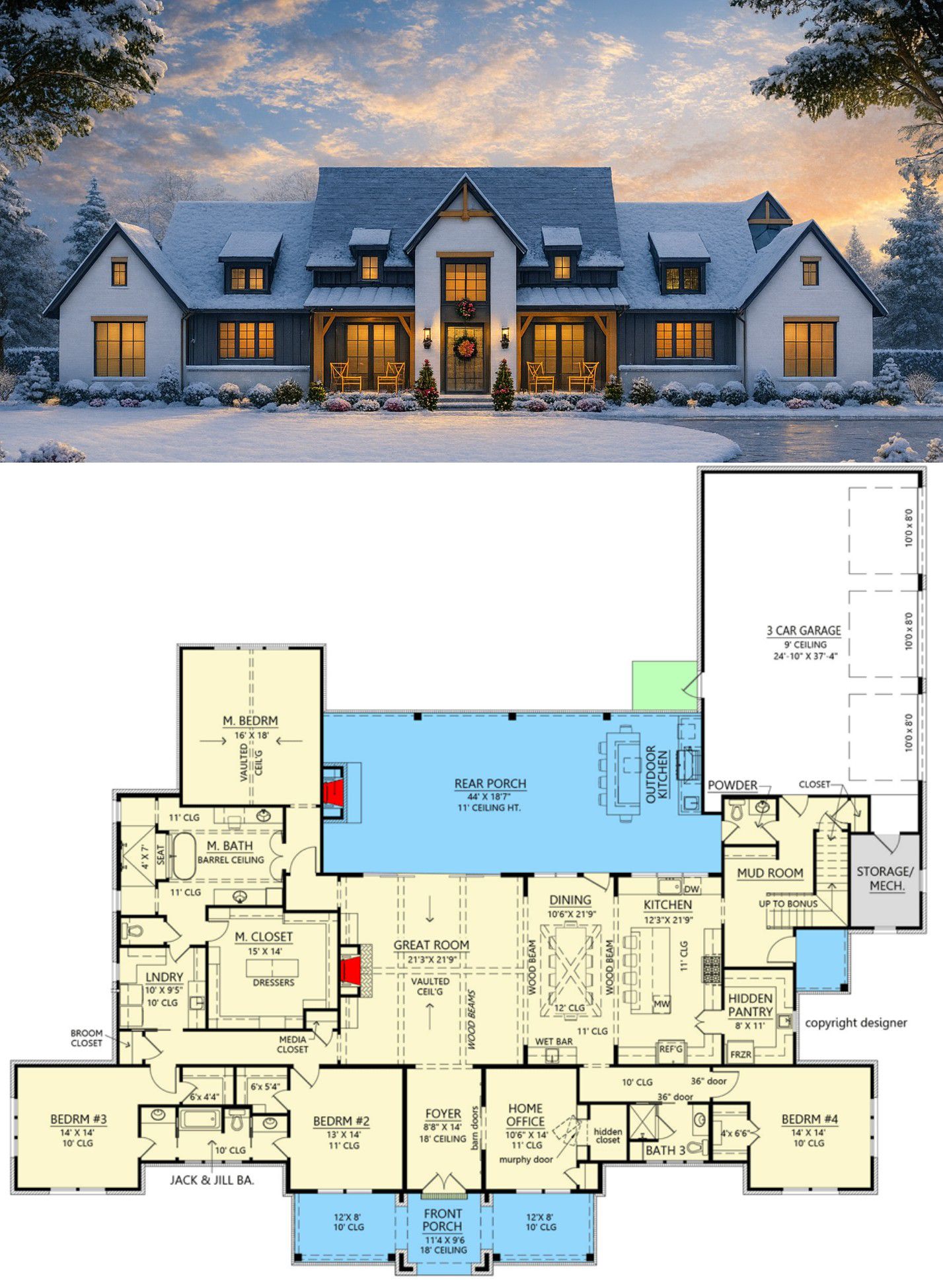 This modern farmhouse hits a sweet spot between **elegant design, thoughtful flow, and lifestyle adaptability**. The open-concept heart of the home — with a grand great room and chef-ready kitchen — is perfect for everyday living or entertaining. The outdoor kitchen and fireplace extend these social spaces to the exterior, giving you more room to relax, dine, and connect with family and friends.