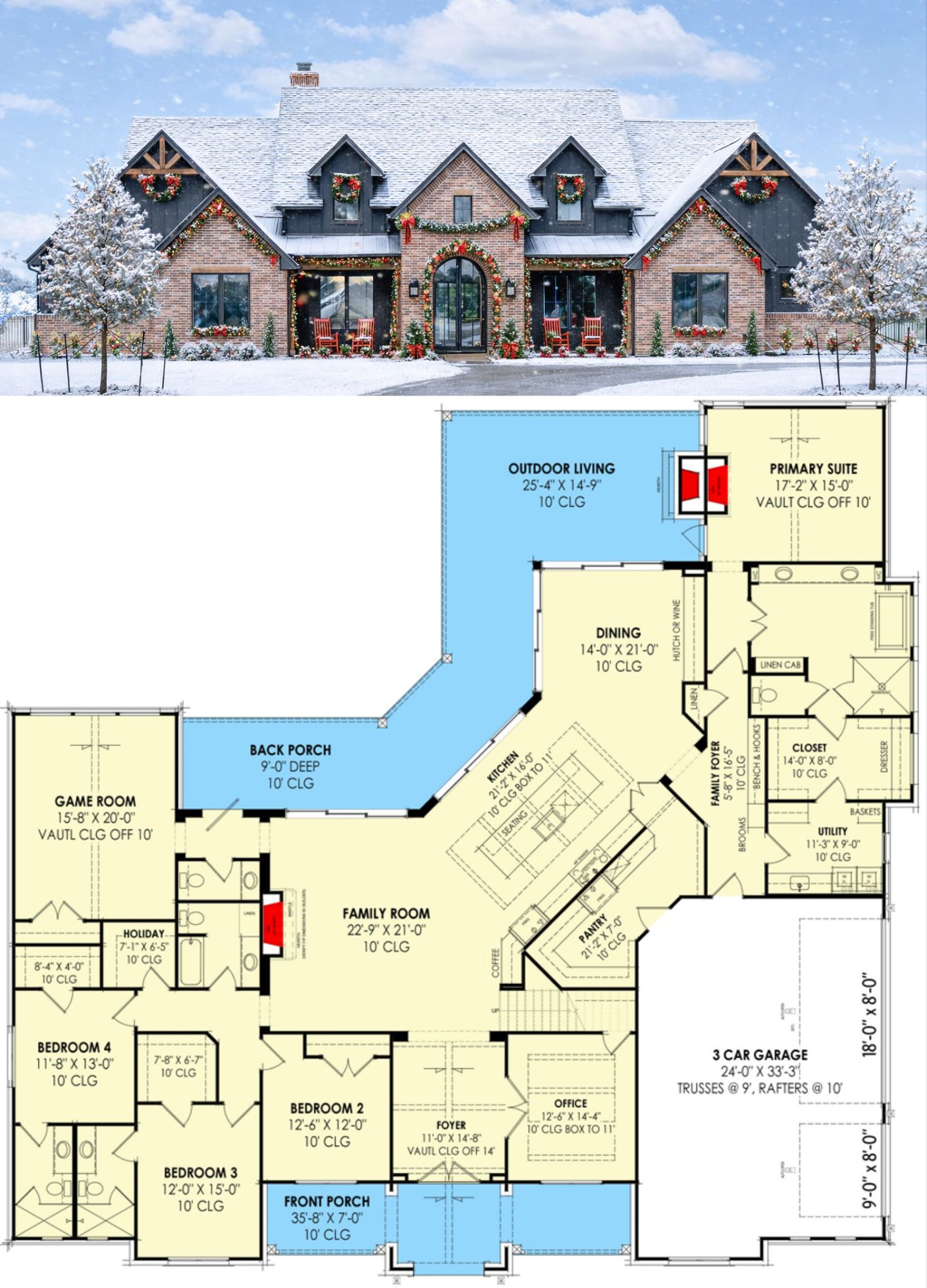 What makes this transitional home special is its balance. The symmetry creates a sense of order and elegance, while the interior layout supports relaxed, modern living. Open shared spaces encourage connection, private bedroom zones offer comfort, and the optional bonus room provides flexibility for the future.