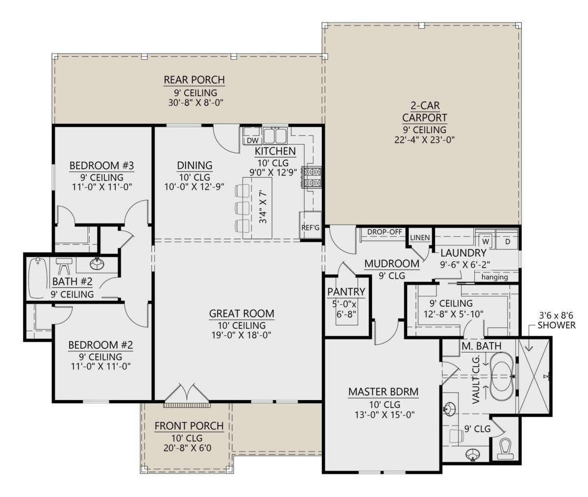Generous **covered porch areas** enhance both the front and rear of the home, encouraging an indoor-outdoor lifestyle. The **covered front porch** provides a relaxed outdoor room perfect for morning coffee or welcoming guests.