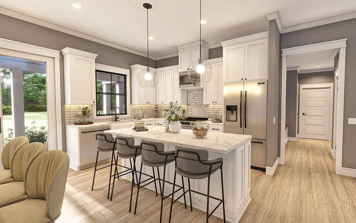 A central island or ample counter space helps anchor the kitchen while offering casual seating options, prep space, and a natural connection to the dining and living areas.