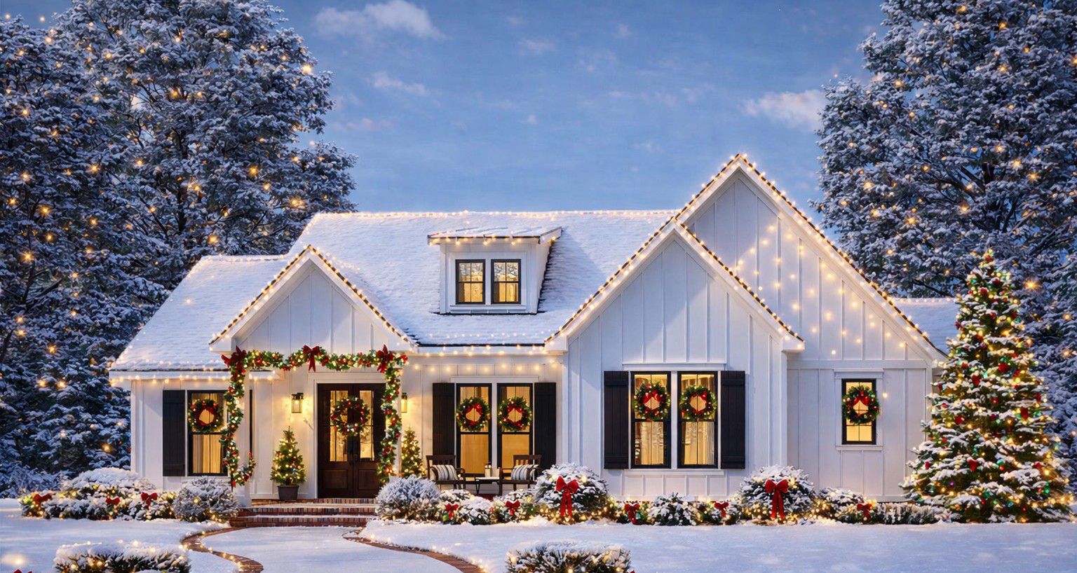 From the curb, this home presents classic modern farmhouse charm with clean rooflines, balanced proportions, and an inviting covered front porch that enhances curb appeal and creates a welcoming outdoor seating area.