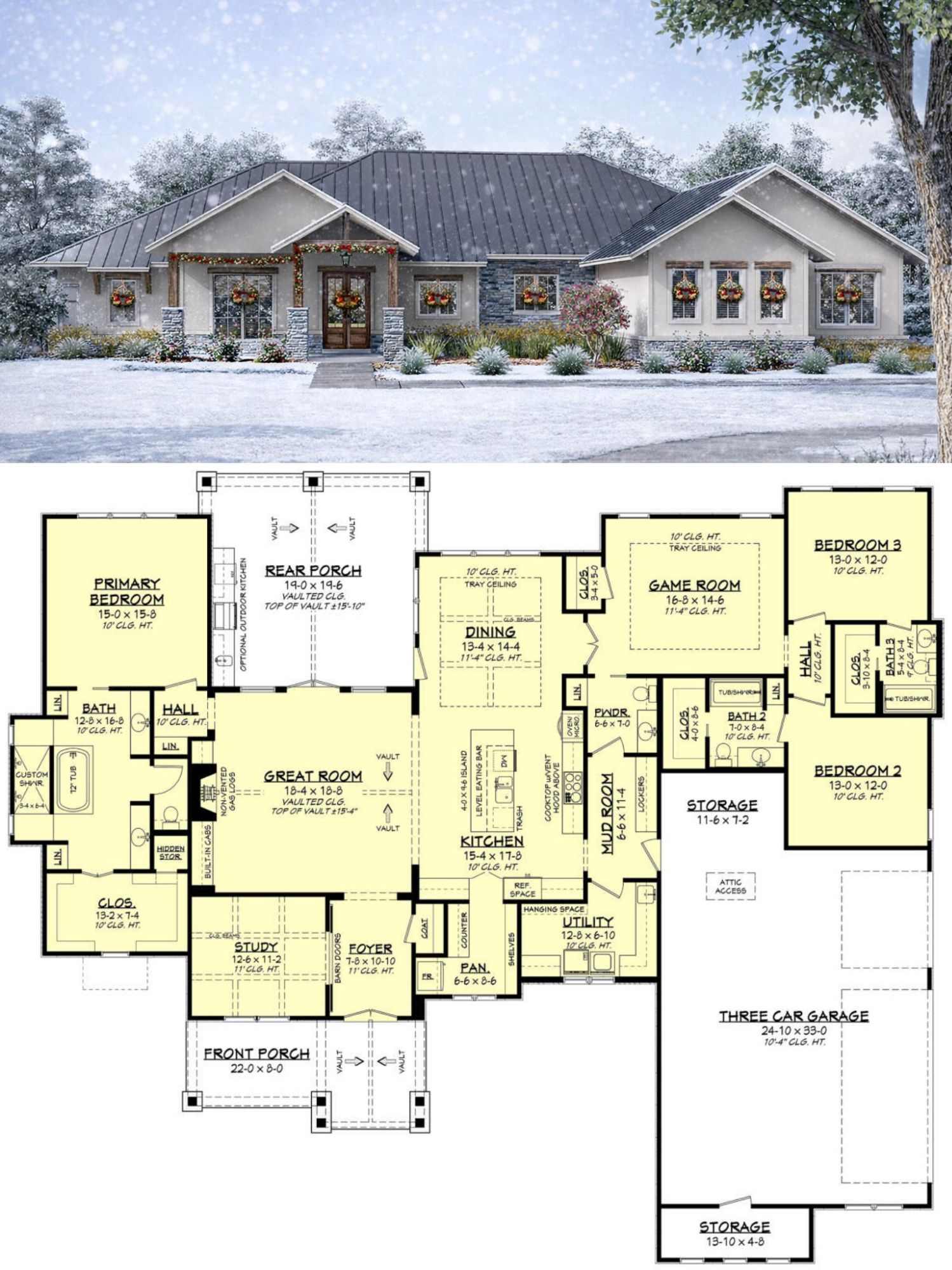 The design includes 3 bedrooms and 3 full bathrooms + 1 half bath, and blends open living areas with private retreats and versatile functional zones for everyday comfort and entertaining.