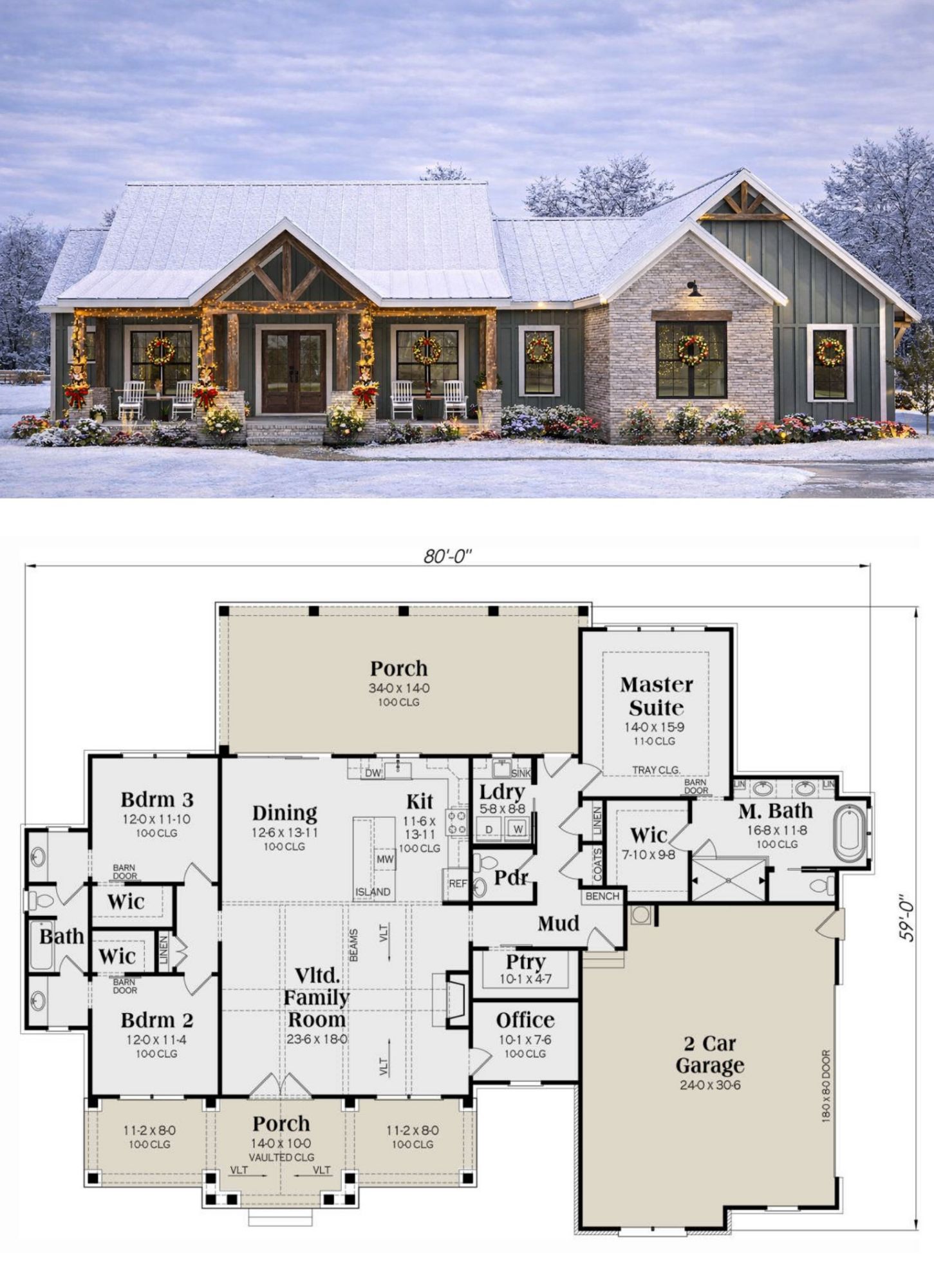 With a welcoming covered front porch, smart room placement, and indoor-outdoor connections, this design balances modern farmhouse aesthetics with practical everyday function.