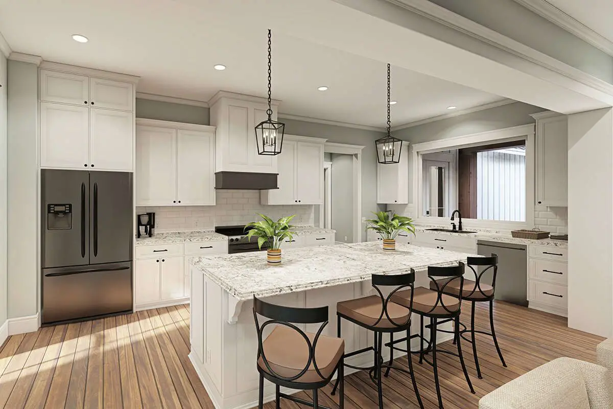 - Large kitchen island and walk-in pantry for efficient meal prep and storage.