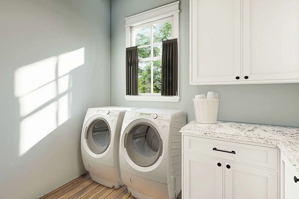 A combined mudroom and laundry off the garage entry serves as a practical drop zone for backpacks, coats, and errands, keeping the main living zones tidy and organized.