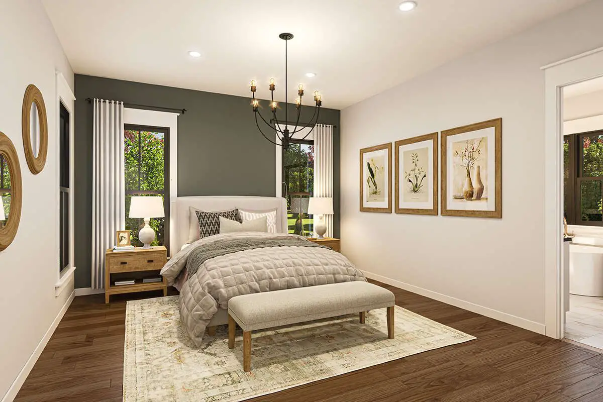 - Primary suite designed to offer privacy and comfort with direct access to a well-appointed bathroom.