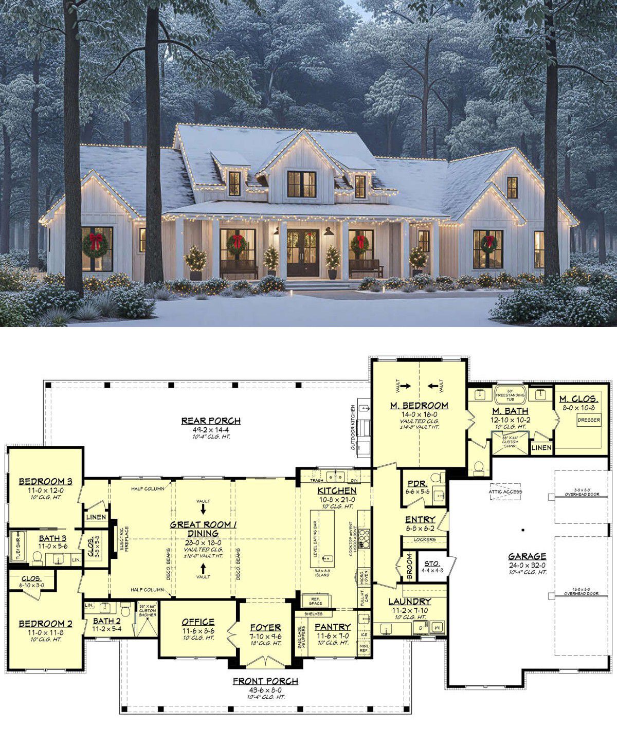 With an efficient flow among living zones, thoughtful transitions between indoor and outdoor spaces, and practical everyday features, this design encapsulates modern farmhouse living at its best.