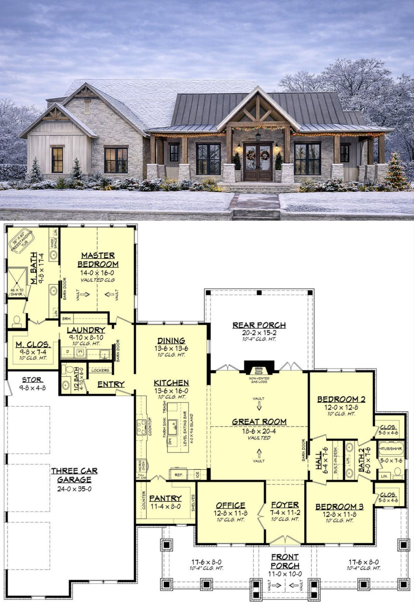 This modern farmhouse plan offers approximately 2,454 sq ft of well-balanced, single-story living space that thoughtfully combines open shared areas, private retreat zones, and versatile functional areas. The layout includes 3 bedrooms, 2 full bathrooms + 1 half bath, and an attached 3-car garage (~948 sq ft), making it ideal for families seeking everyday comfort, flexible room use, and strong indoor-outdoor connection.