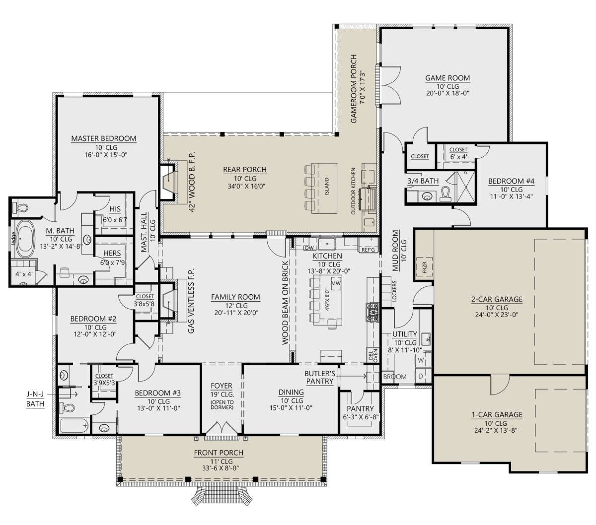 | Outdoor Living | Front porch + rear porch |