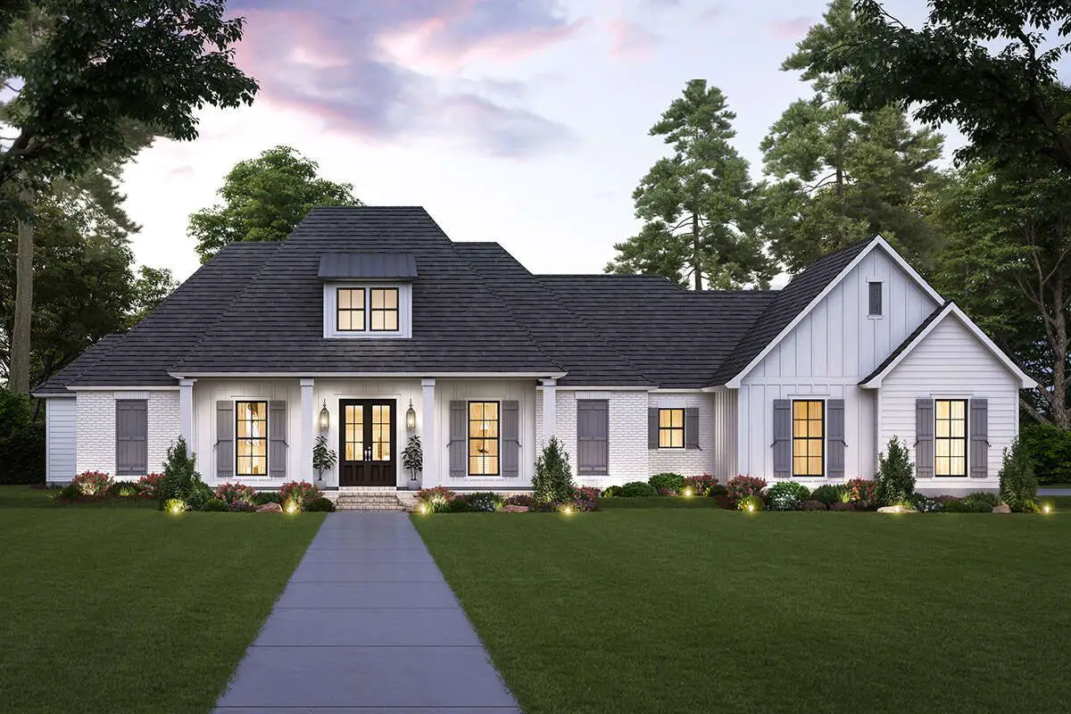 This southern-style house plan provides approximately 3,175 sq ft of well-balanced single-story living space designed for family comfort, everyday flow, and versatile use.