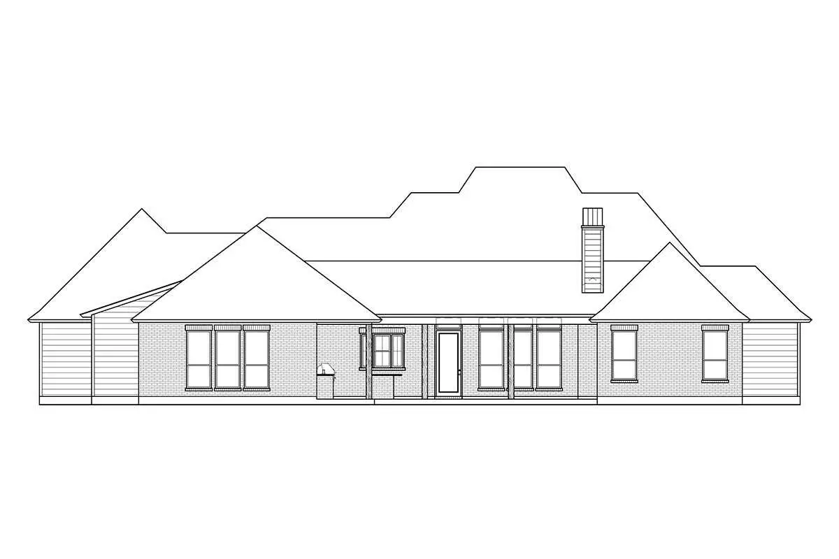 The exterior of this southern plan reflects classic yet refined architectural cues with balanced rooflines, a welcoming covered front porch, and a thoughtful distribution of windows that bring natural light into the interior living spaces.