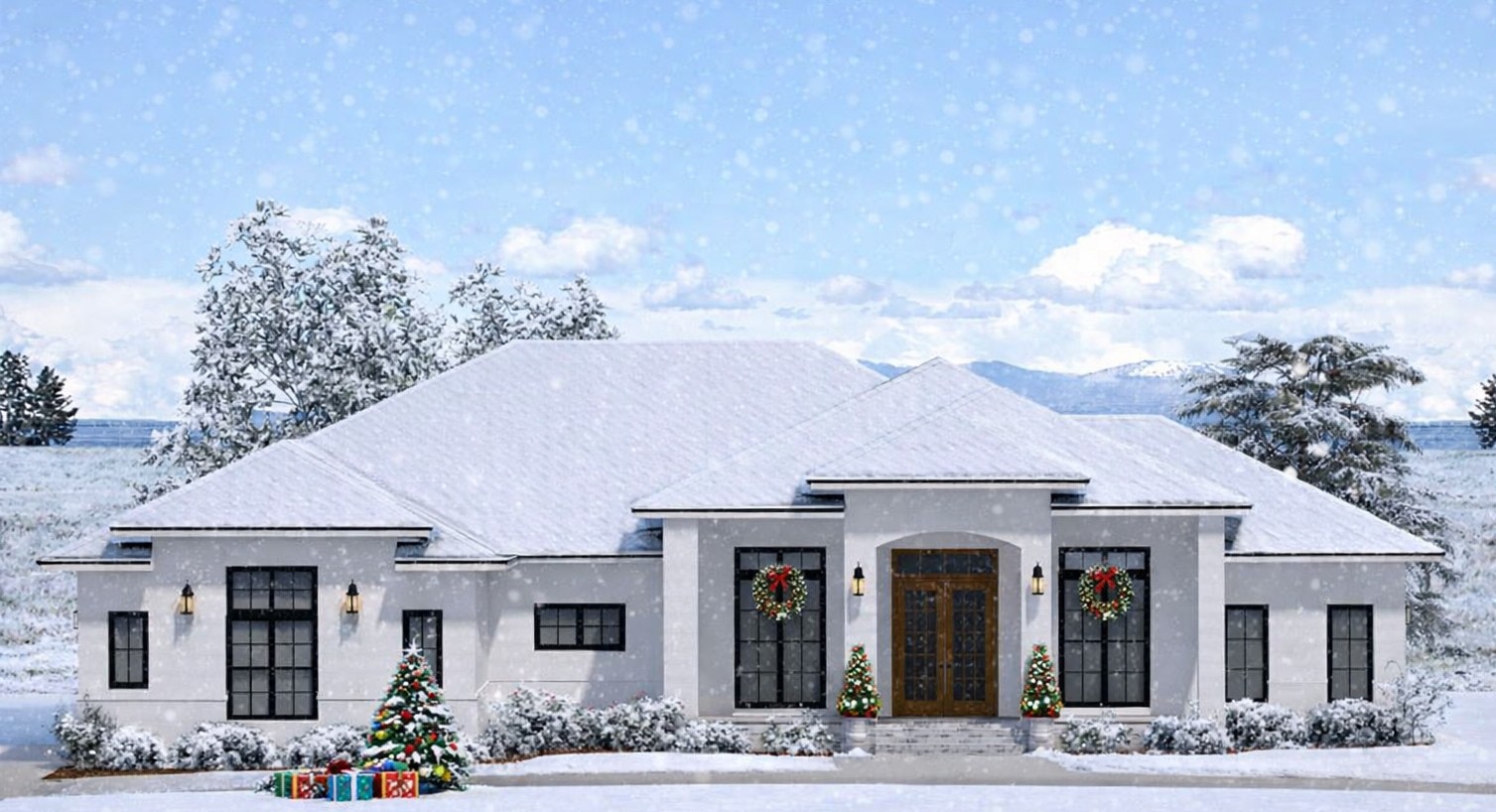 This contemporary house plan offers approximately 3,046 sq ft of thoughtfully designed living space that blends modern features with functional everyday flow. The layout includes 4 bedrooms, 4 full bathrooms + 1 half bath, and an attached 3-car garage.