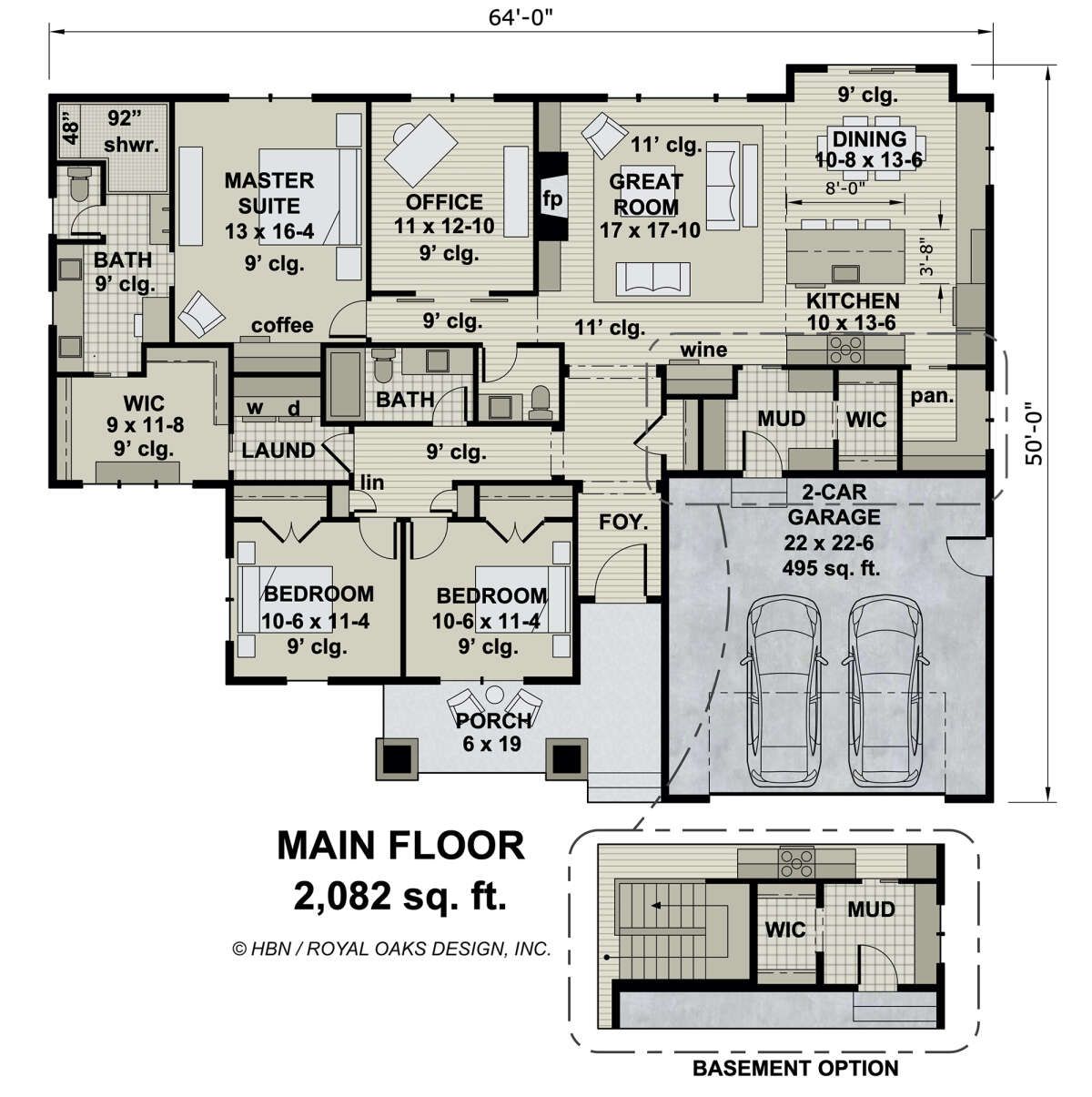 | Width × Depth | ~ 64′ × 50′ |