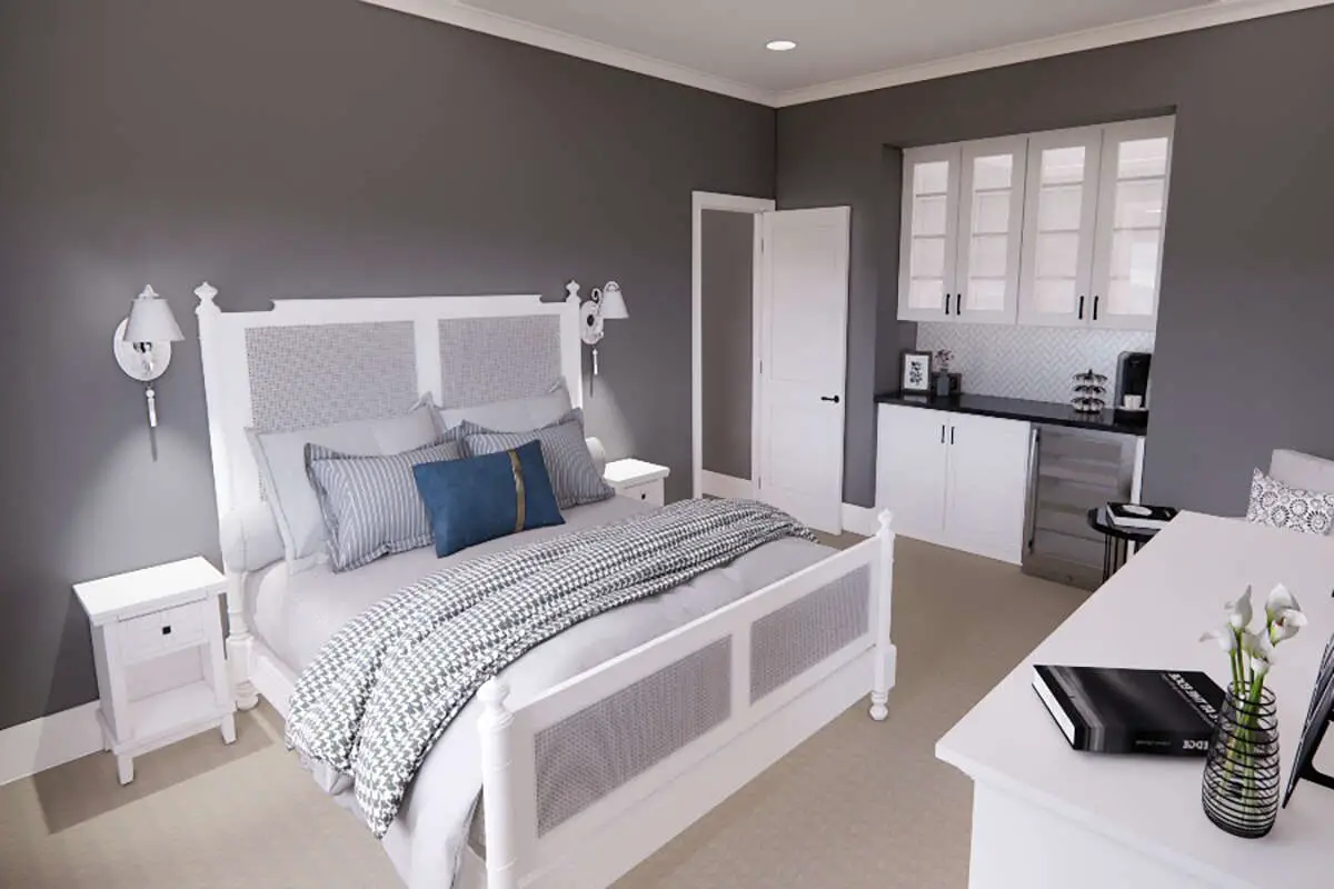 - Primary suite designed for privacy and comfort with direct access to full bathroom amenities.