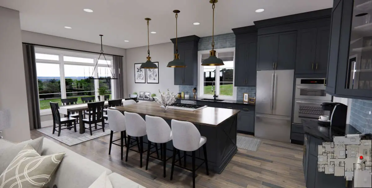 - Spacious kitchen island that supports casual dining, social interaction, and efficient meal prep.