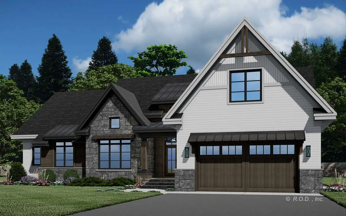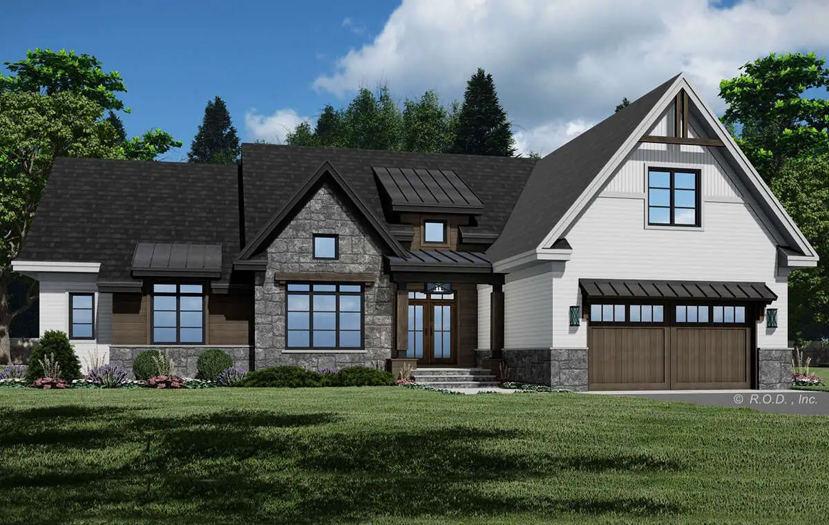 The design includes 3 bedrooms, 2 full bathrooms + 1 half bath, and an attached 2-car garage (~495 sq ft). With its efficient layout, generous porch areas, and practical circulation, this plan is well suited for families seeking a stylish yet livable home that supports both everyday routines and relaxed entertaining.